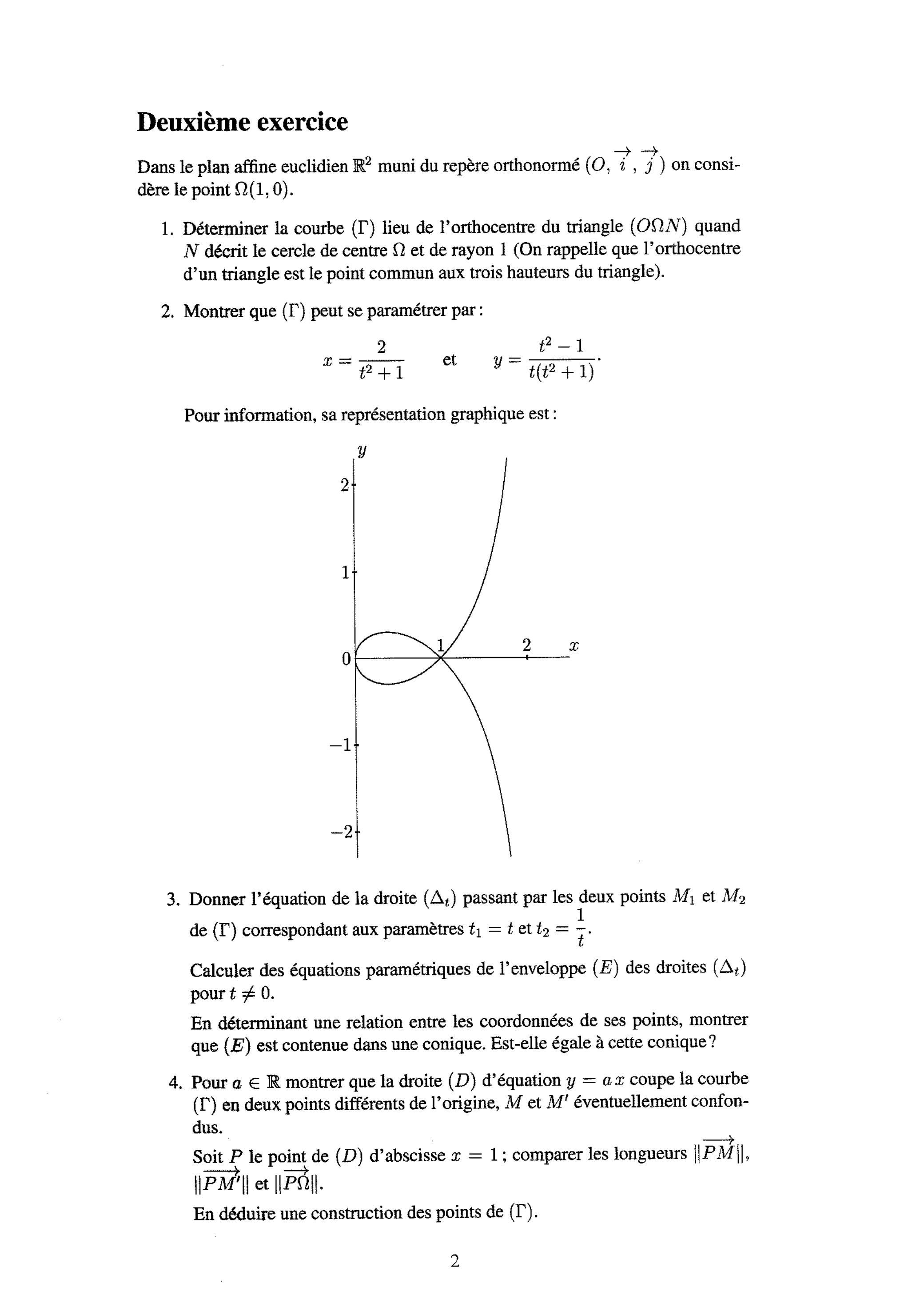1. Déterminer la courbe lieu de l'orthocentre du triangle quand décrit le cercle de centre et de rayon 1 (On rappelle que l'orthocentre d'un triangle est le point commun aux trois hauteurs du triangle).