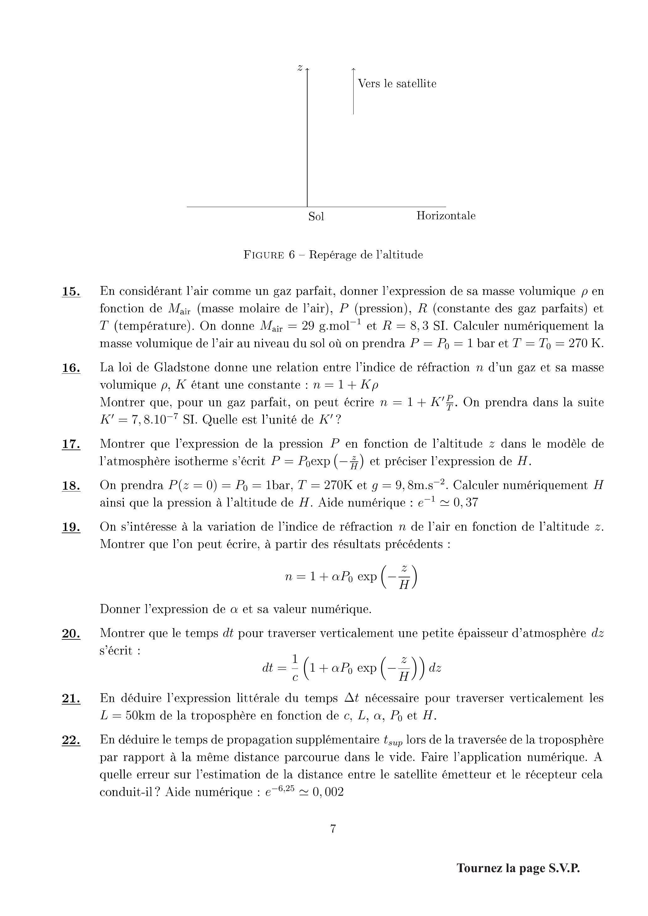 20. Montrer que le temps pour traverser verticalement une petite épaisseur d'atmosphère s'écrit :