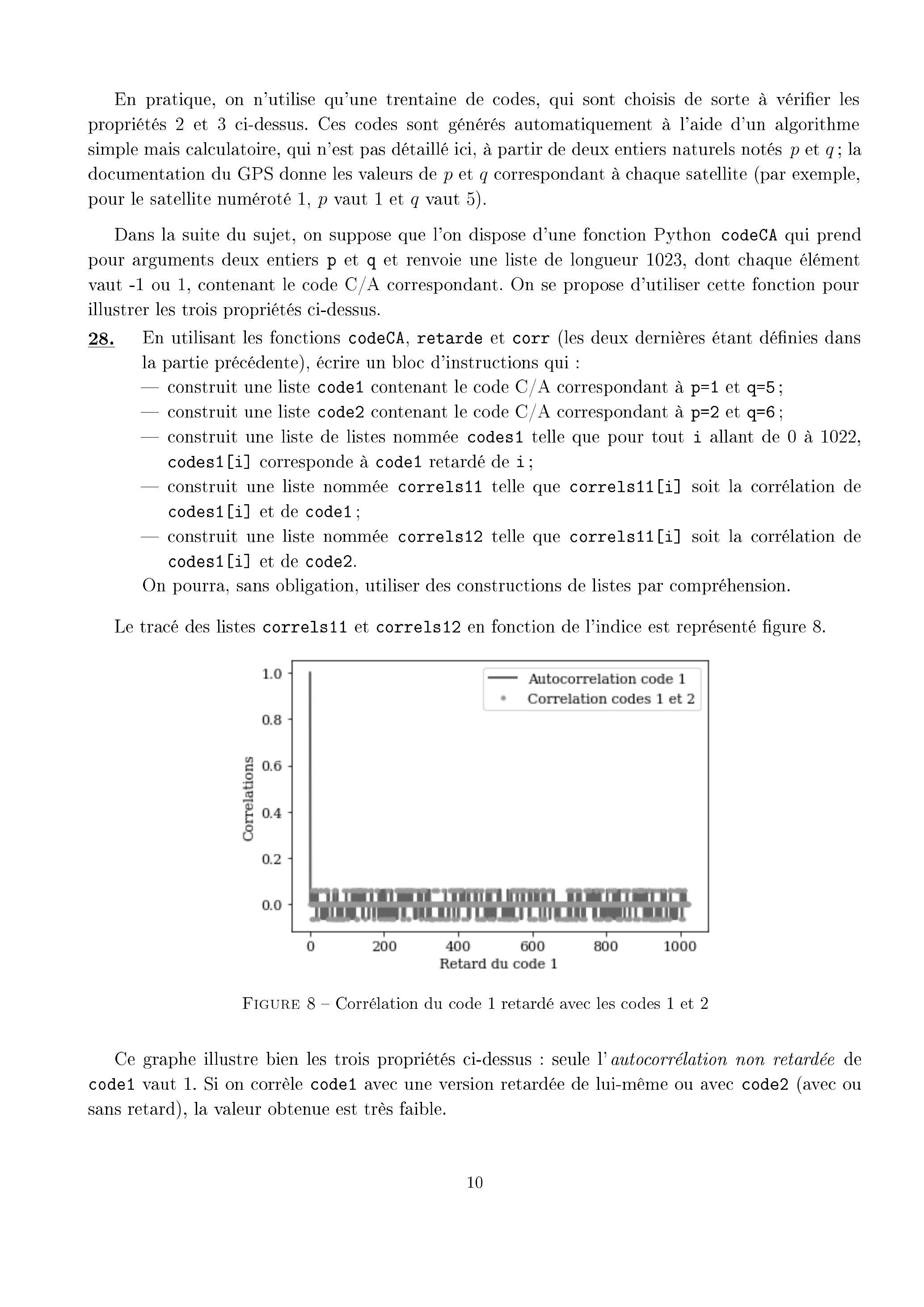Définition 1 : la corrélation de deux codes et de même longueur est le nombre réel suivant :