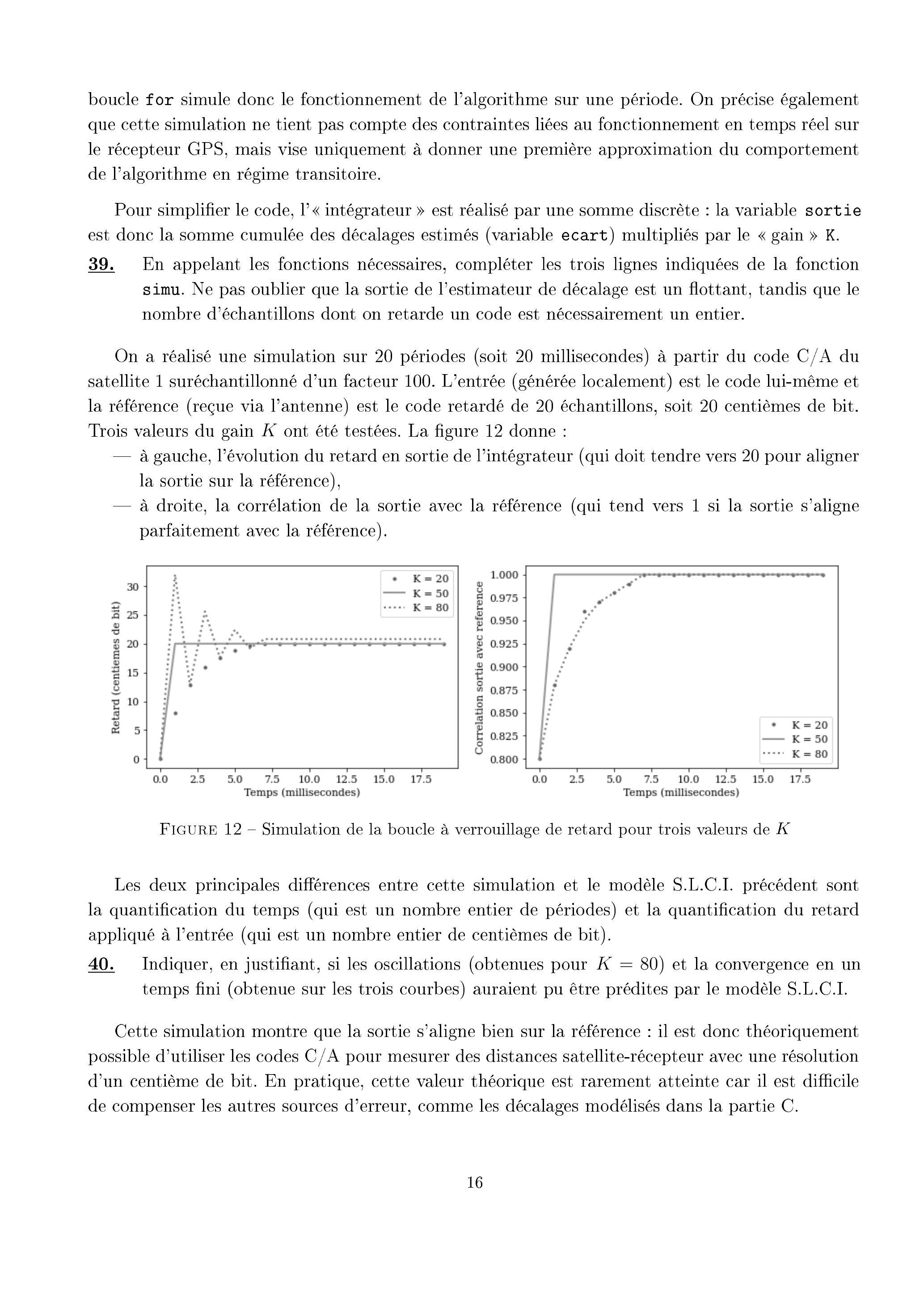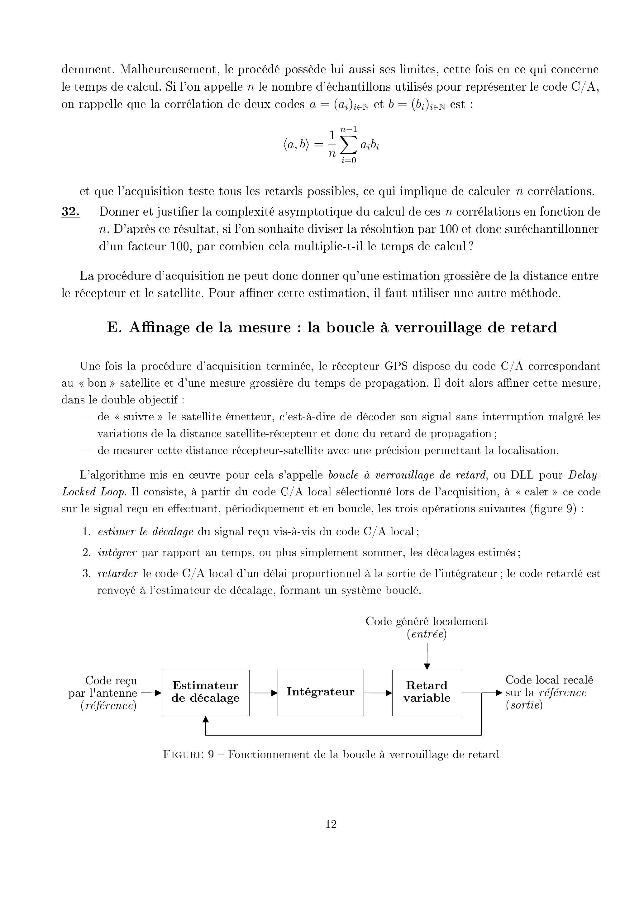 On précise que les trois opérations (estimation, sommation et retard du code d'entrée) sont effectuées une fois par période du code , soit toutes les millisecondes. Chaque tour de la