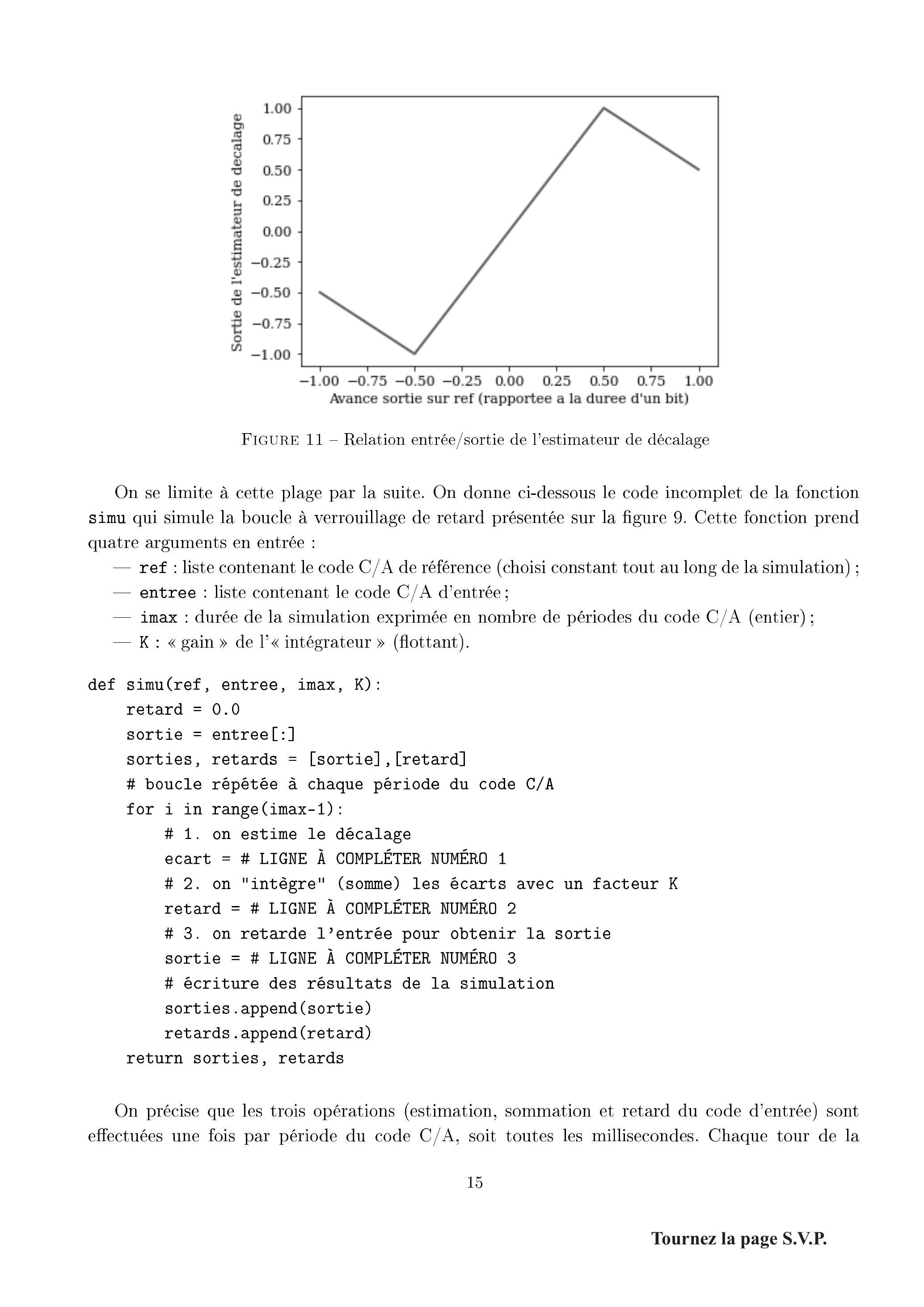 39. En appelant les fonctions nécessaires, compléter les trois lignes indiquées de la fonction simu. Ne pas oublier que la sortie de l'estimateur de décalage est un flottant, tandis que le nombre d'échantillons dont on retarde un code est nécessairement un entier.