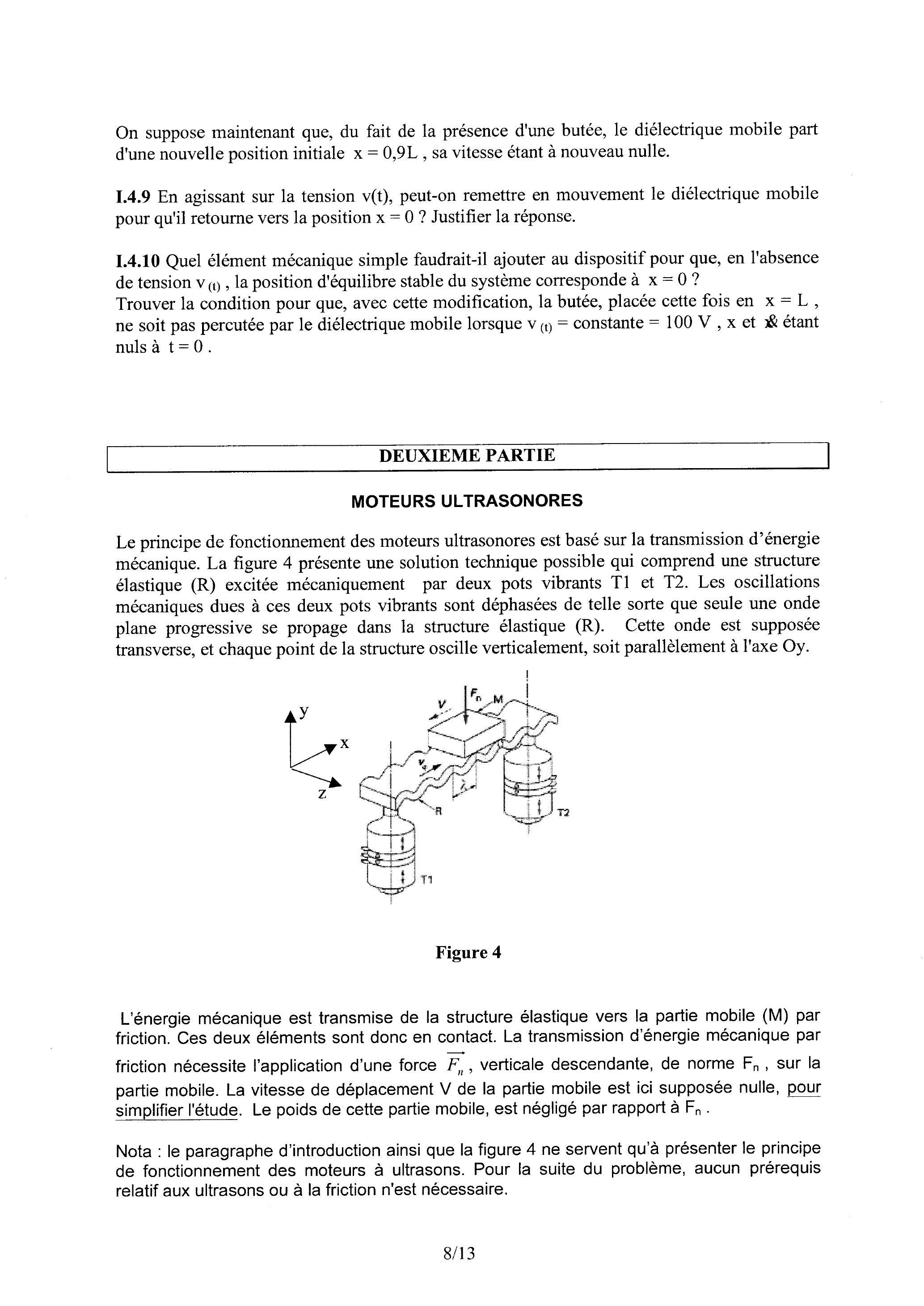Nota : le paragraphe d'introduction ainsi que la figure 4 ne servent qu'à présenter le principe de fonctionnement des moteurs à ultrasons. Pour la suite du problème, aucun prérequis relatif aux ultrasons ou à la friction n'est nécessaire.