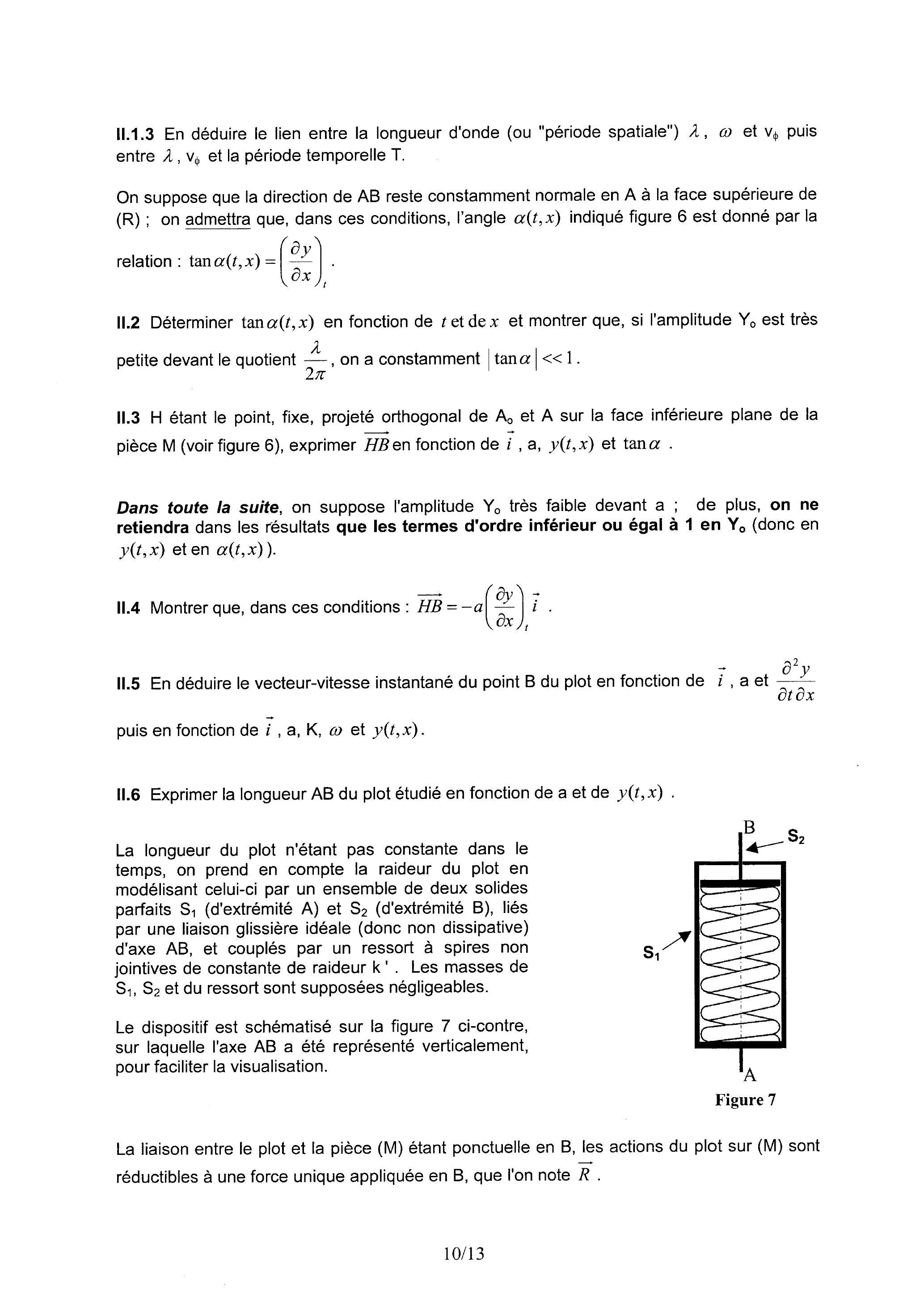 En présence de l'onde, le point se déplace verticalement, donc parallèlement à , selon la loi: ; les grandeurs constantes et sont supposées positives ; on note la vitesse de phase associée au signal ondulatoire donné ci-dessus. On suppose enfin que la face inférieure de la pièce ( ) reste constamment dans le plan horizontal , où a est une constante positive qu'on ne demande pas de déterminer.