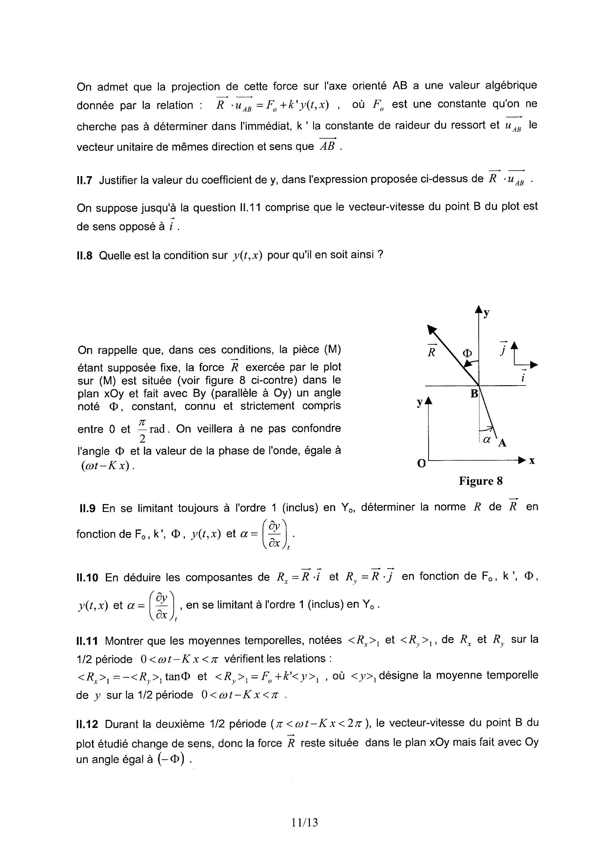 II. 12 Durant la deuxième période ( ), le vecteur-vitesse du point B du plot étudié change de sens, donc la force reste située dans le plan xOy mais fait avec Oy un angle égal à .