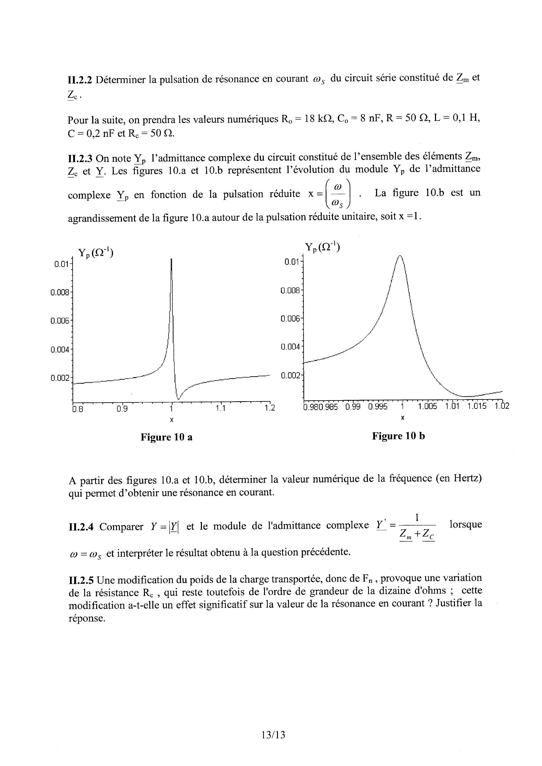 II.2.5 Une modification du poids de la charge transportée, donc de , provoque une variation de la résistance , qui reste toutefois de l'ordre de grandeur de la dizaine d'ohms ; cette modification a-t-elle un effet significatif sur la valeur de la résonance en courant? Justifier la réponse.