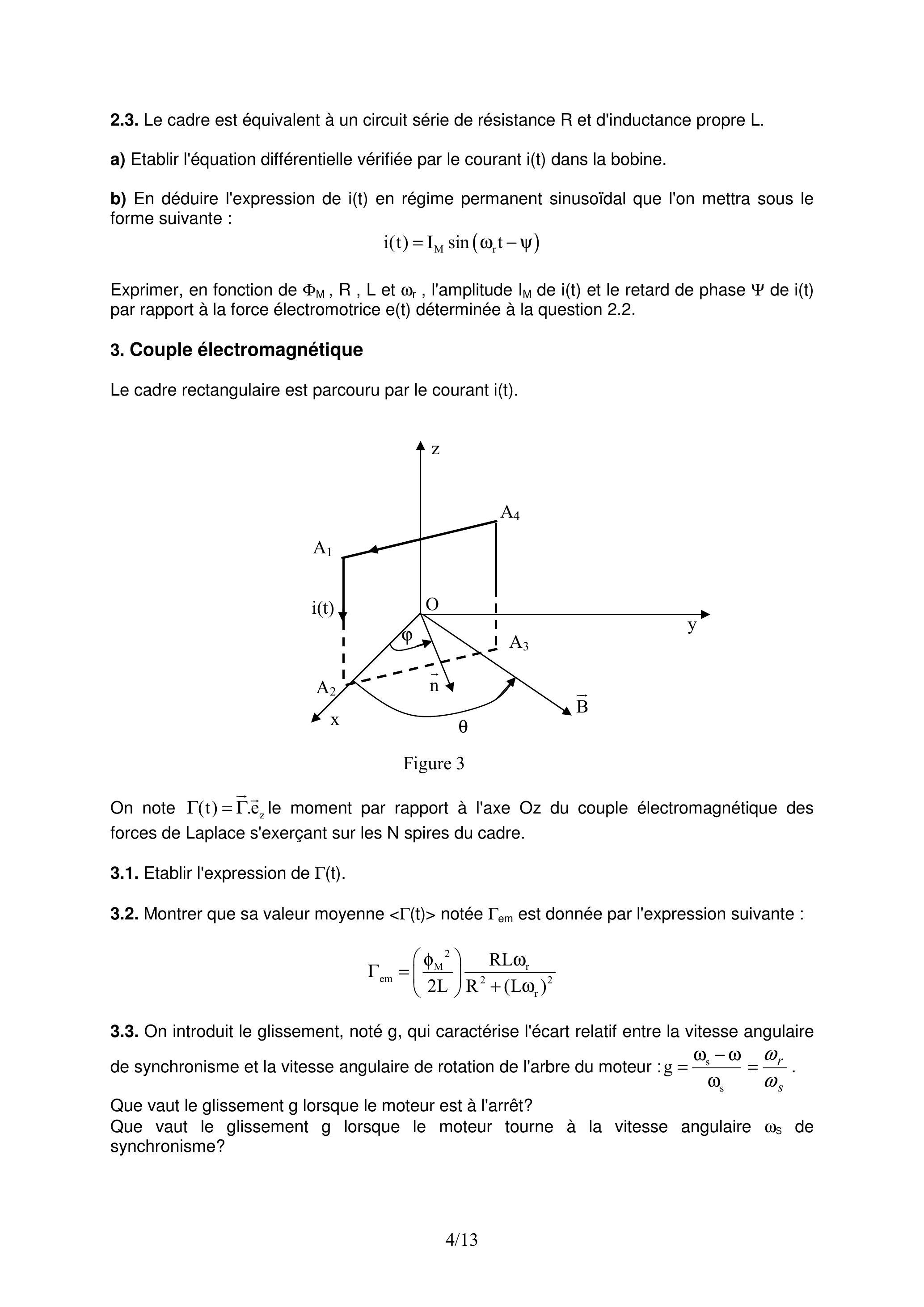2.2. En déduire la force électromotrice d'induction e(t) qui apparaît dans celui-ci en fonction du flux maximum à travers le circuit , et de la vitesse angulaire de glissement est positive ou nulle).
