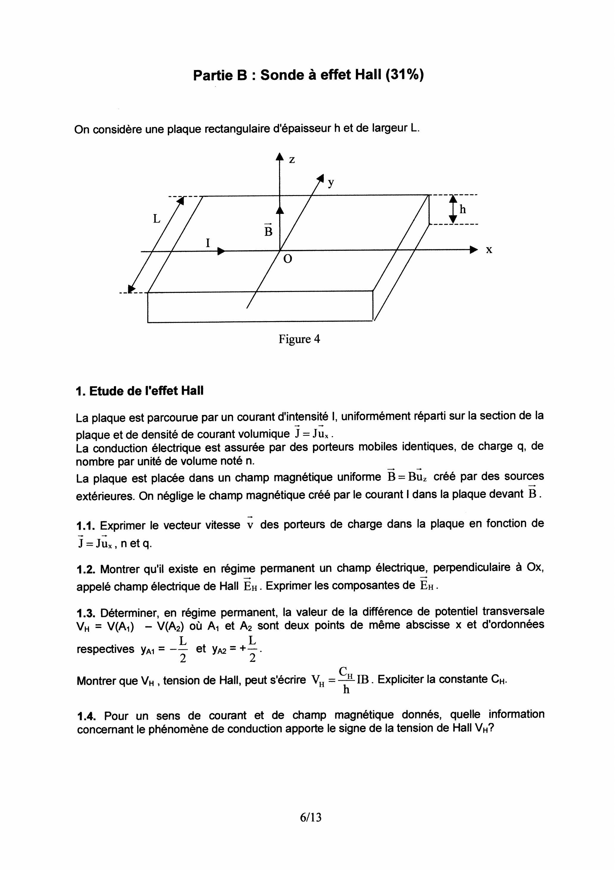 a) A l'aide du résultat de la question 1.3. montrer que la tension de Hall peut s'écrire : . Expliciter la constante .