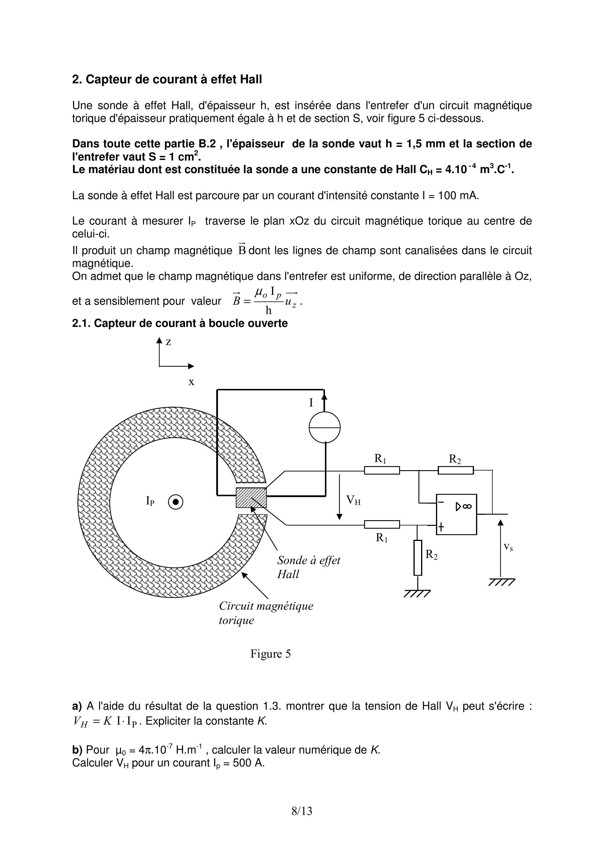 Une sonde à effet Hall, d'épaisseur , est insérée dans l'entrefer d'un circuit magnétique torique d'épaisseur pratiquement égale à h et de section S , voir figure 5 ci-dessous.