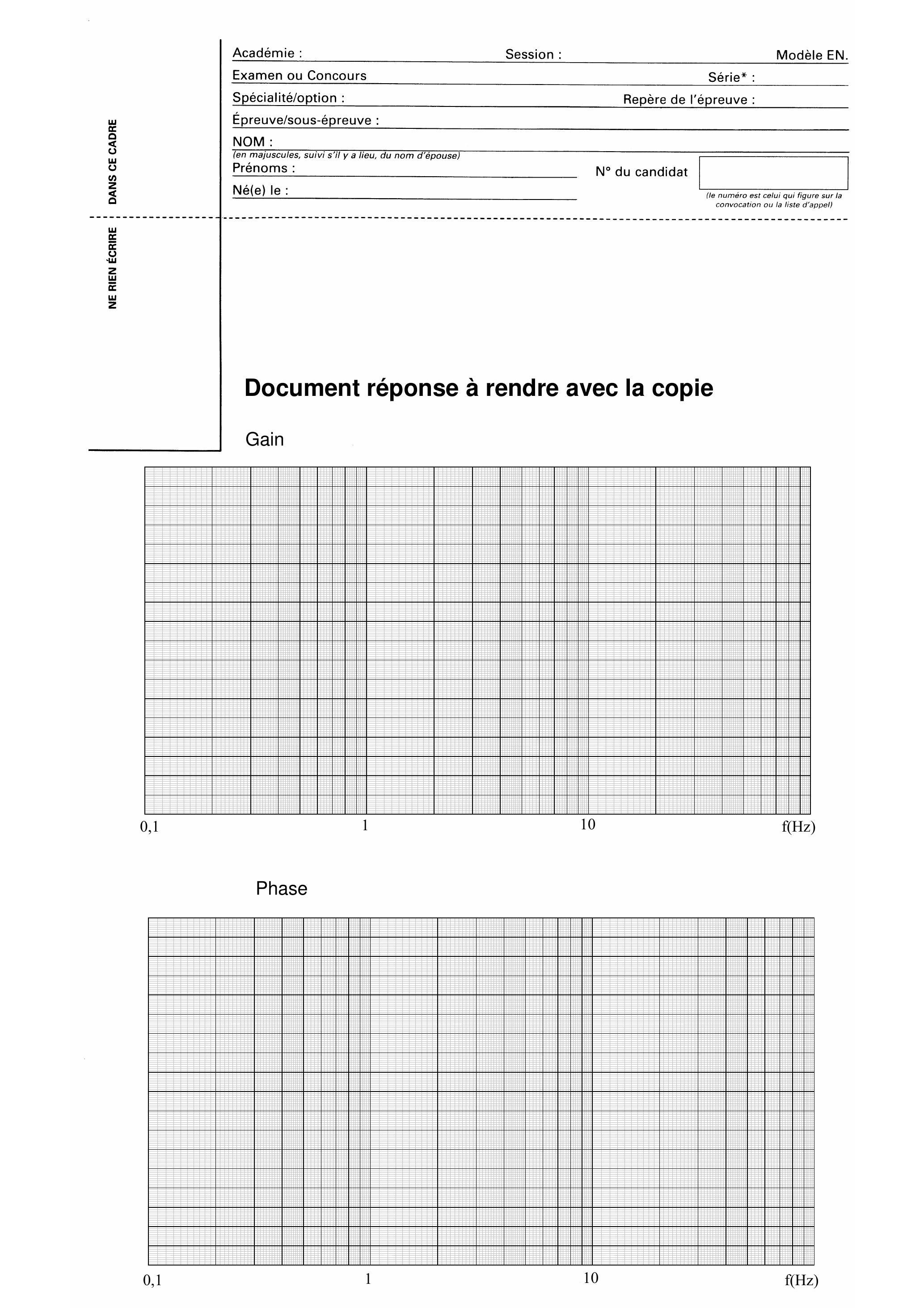 Chaque candidat reçoit, avec le sujet, un document réponse sur feuillet mobile, à rendre avec la copie.