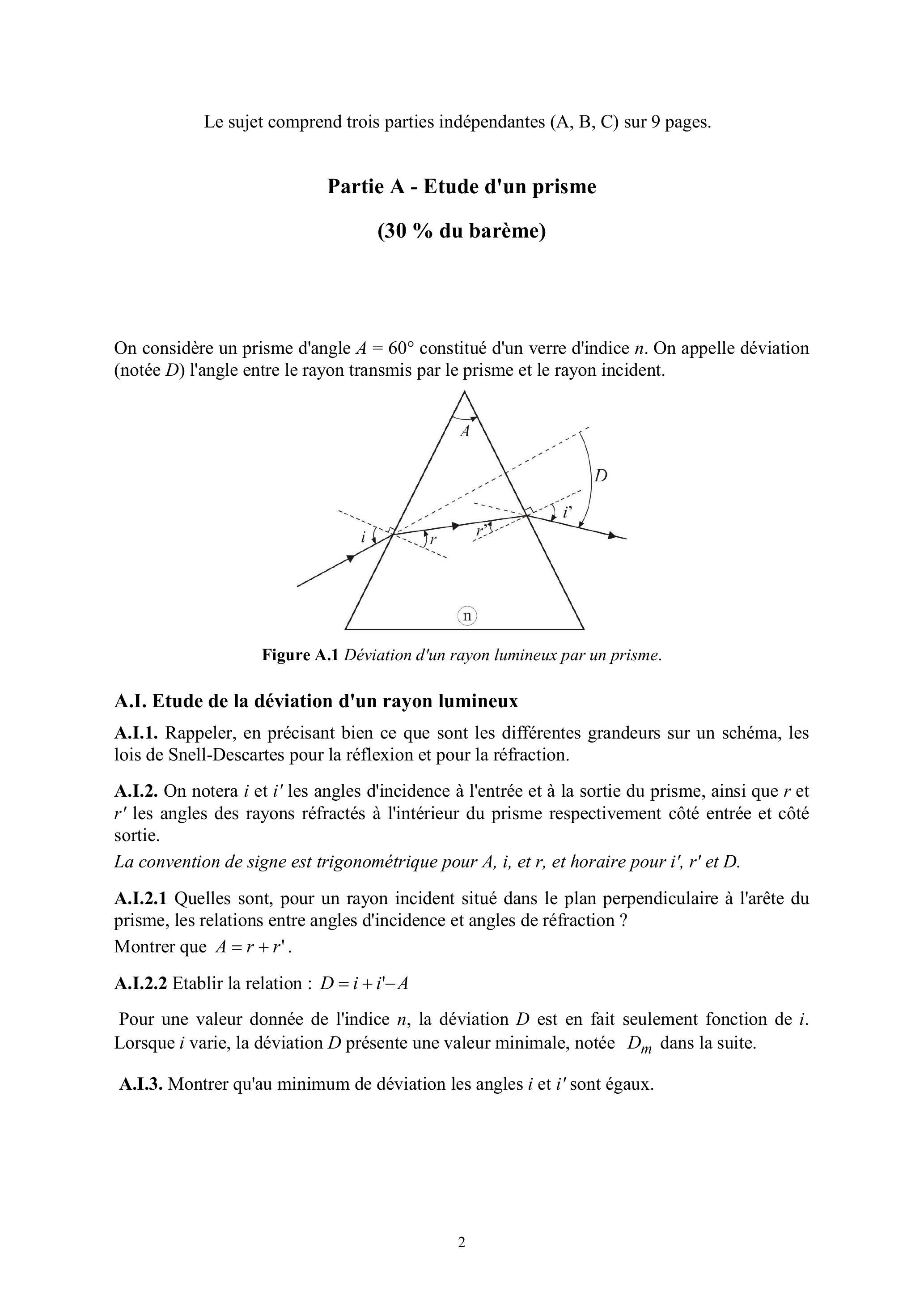 A.II.2 Le minimum de déviation défini à la question A.I. 3 est-il fonction de la longueur d'onde?
