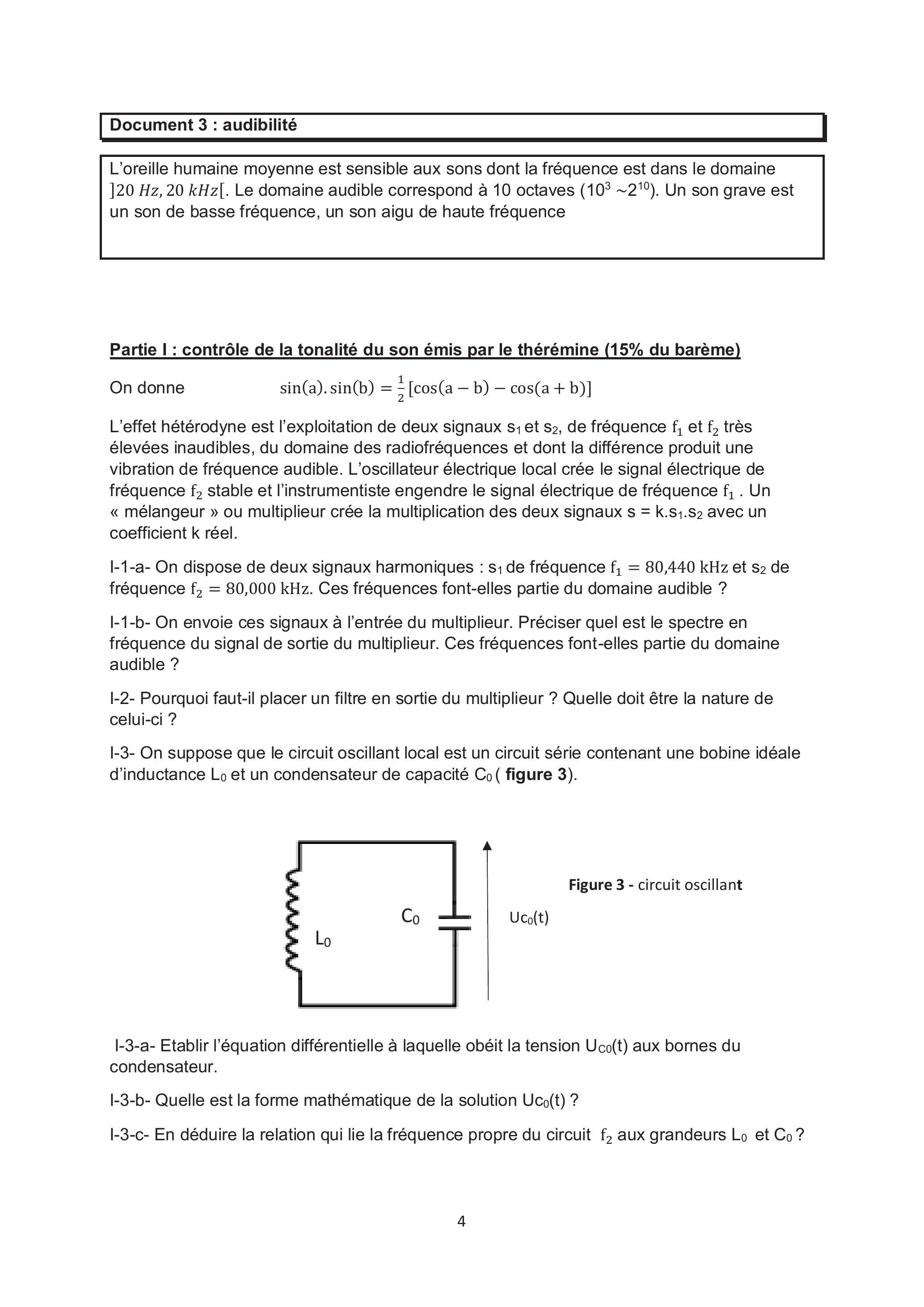 Le sujet s'intéresse aux différents organes d'instruments de musique dans lesquels le musicien crée des signaux électriques pour engendrer in fine à partir de ceux-ci des ondes sonores perçues par les auditeurs. Le problème étudie les transformations des signaux et leurs interactions au fur et à mesure de leur cheminement dans le montage électrique.