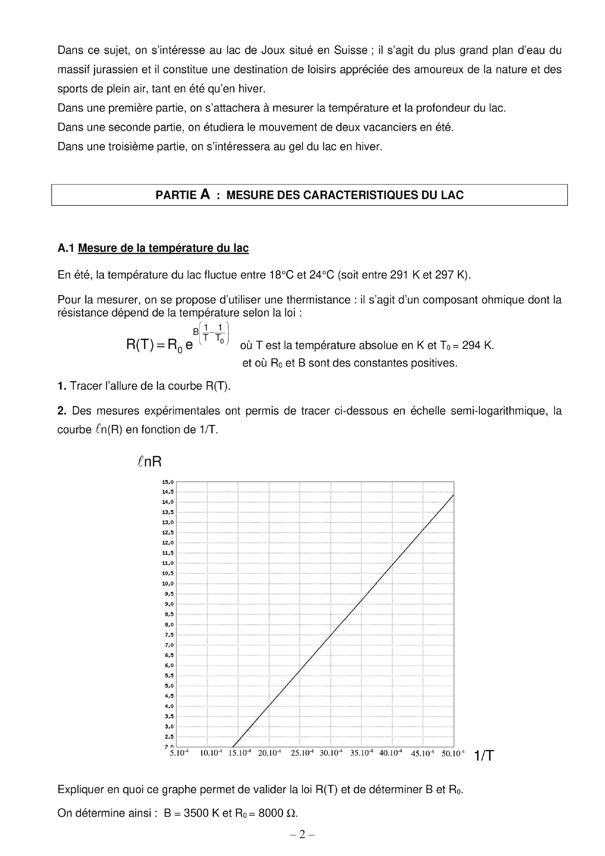 Pour la mesurer, on se propose d'utiliser une thermistance : il s'agit d'un composant ohmique dont la résistance dépend de la température selon la loi: