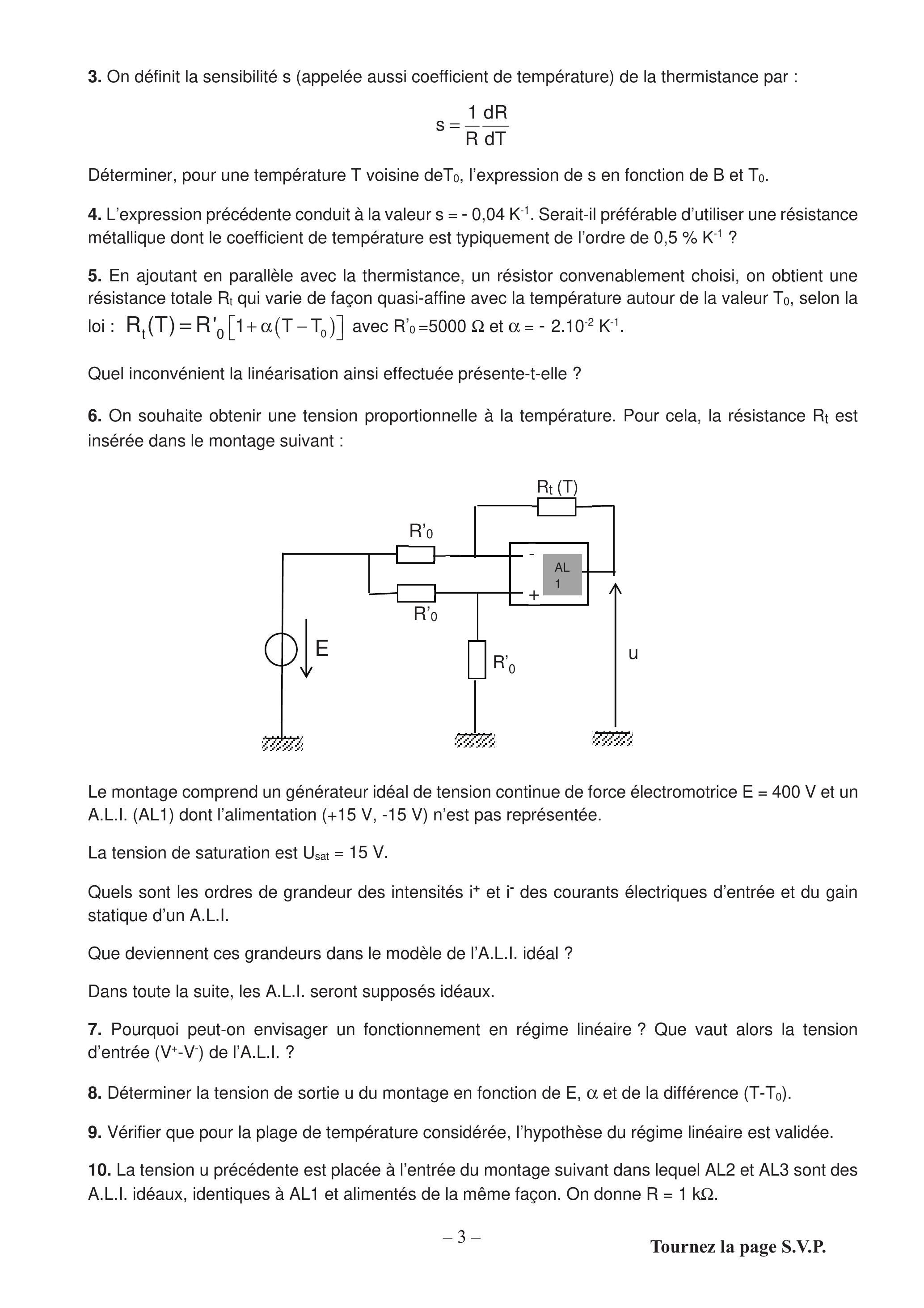 6. On souhaite obtenir une tension proportionnelle à la température. Pour cela, la résistance est insérée dans le montage suivant :
