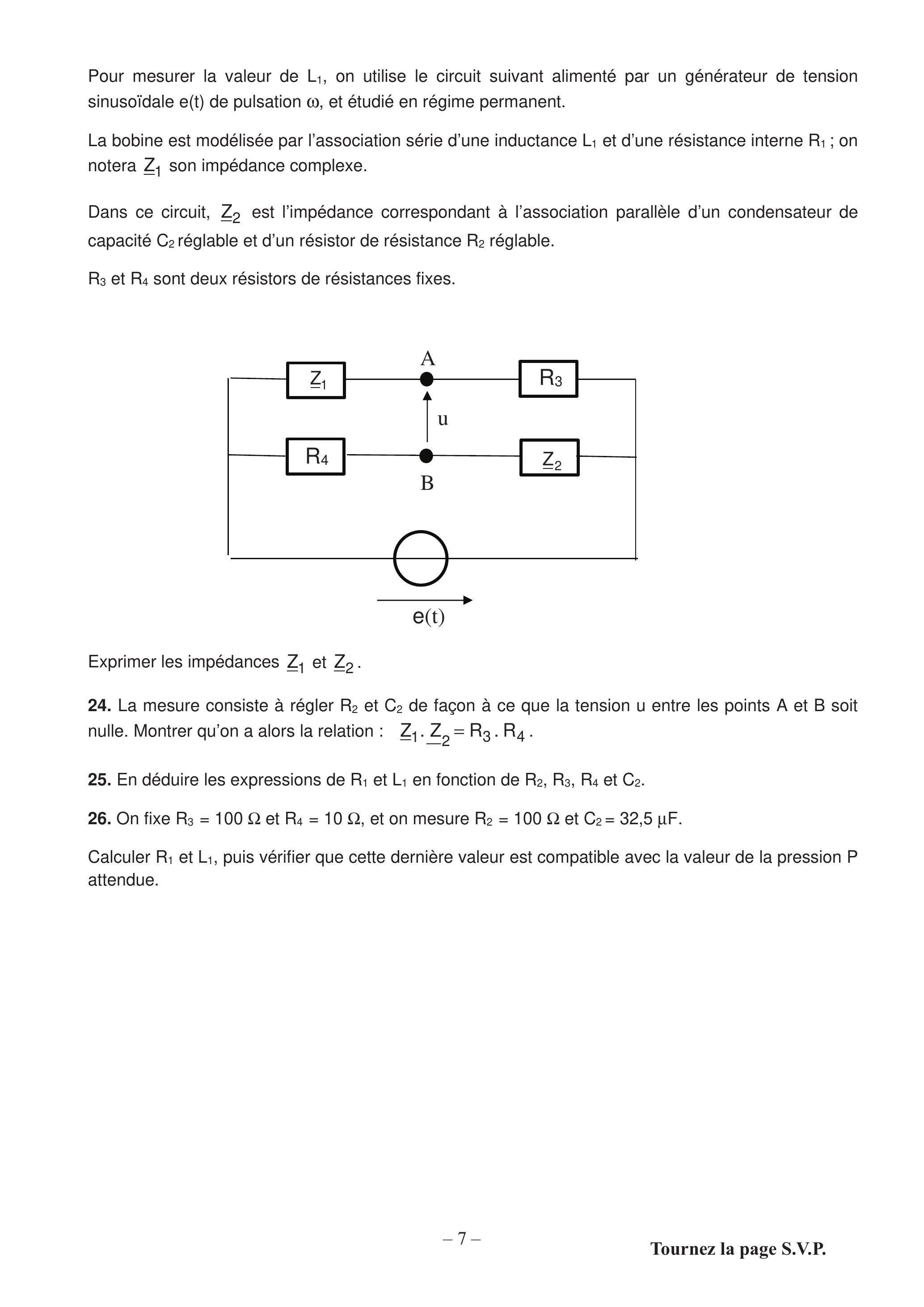 24. La mesure consiste à régler et de façon à ce que la tension entre les points et soit nulle. Montrer qu'on a alors la relation: .