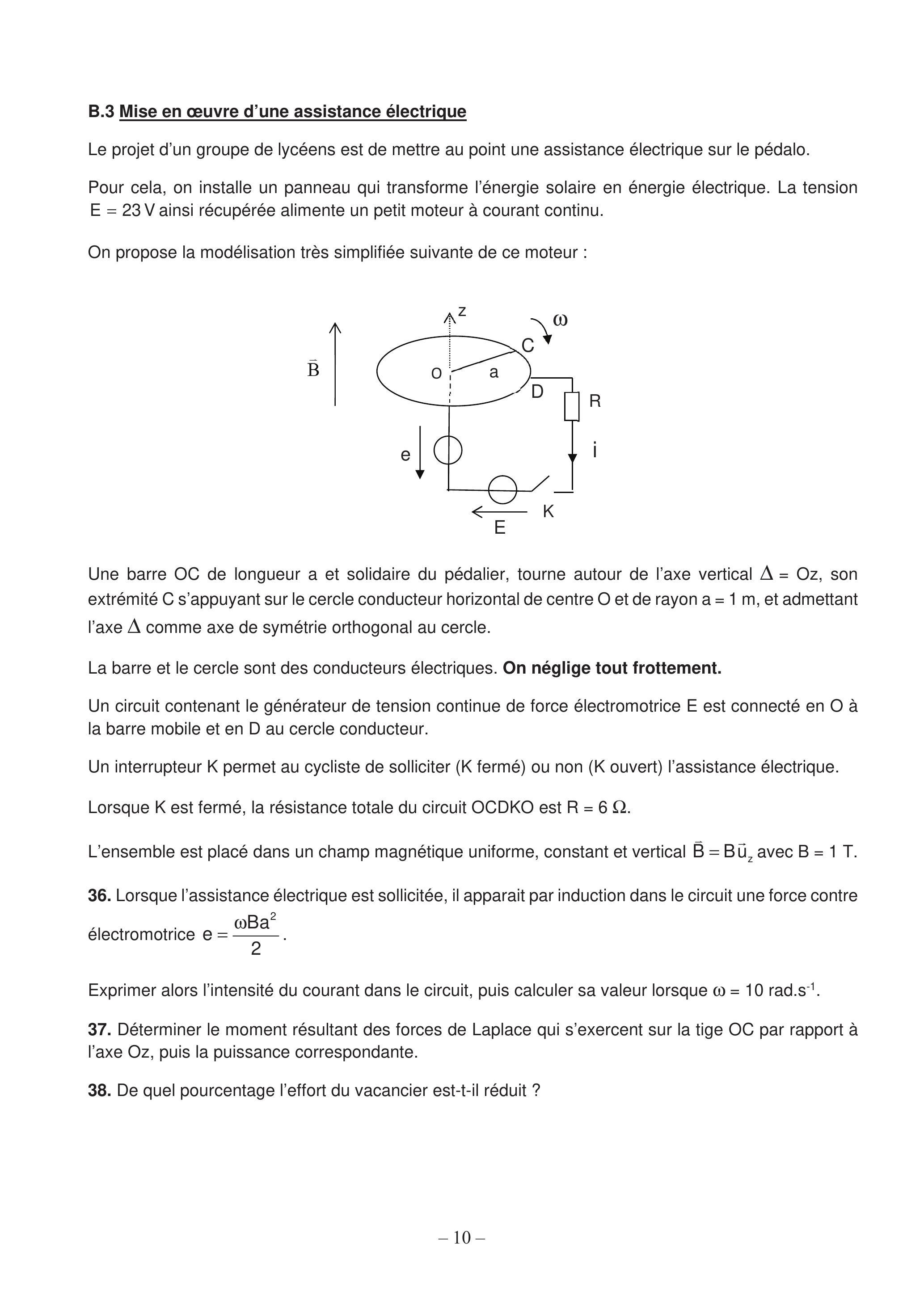 37. Déterminer le moment résultant des forces de Laplace qui s'exercent sur la tige OC par rapport à l'axe Oz, puis la puissance correspondante.