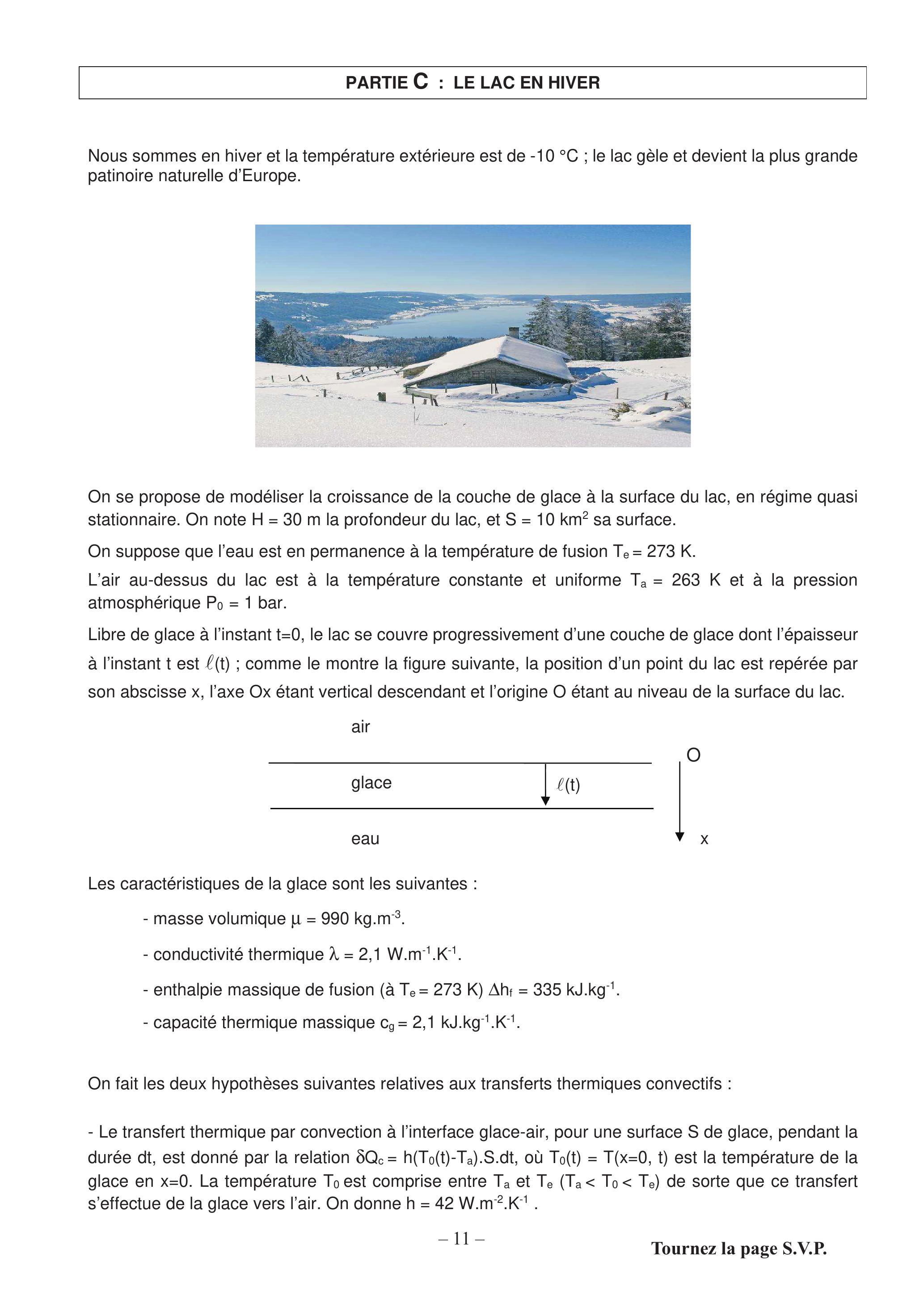 48. En déduire l'expression de tant que le lac n'est pas gelé dans sa totalité.