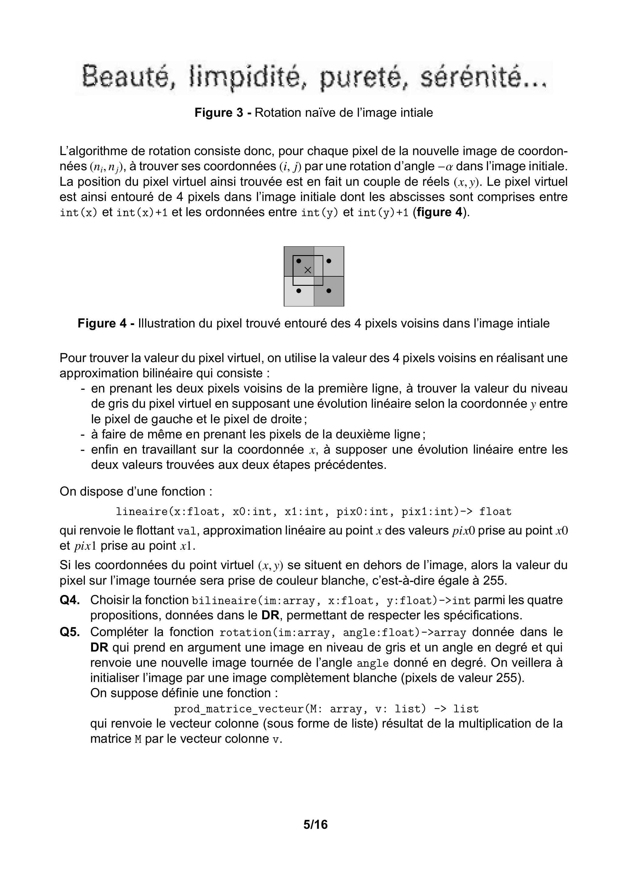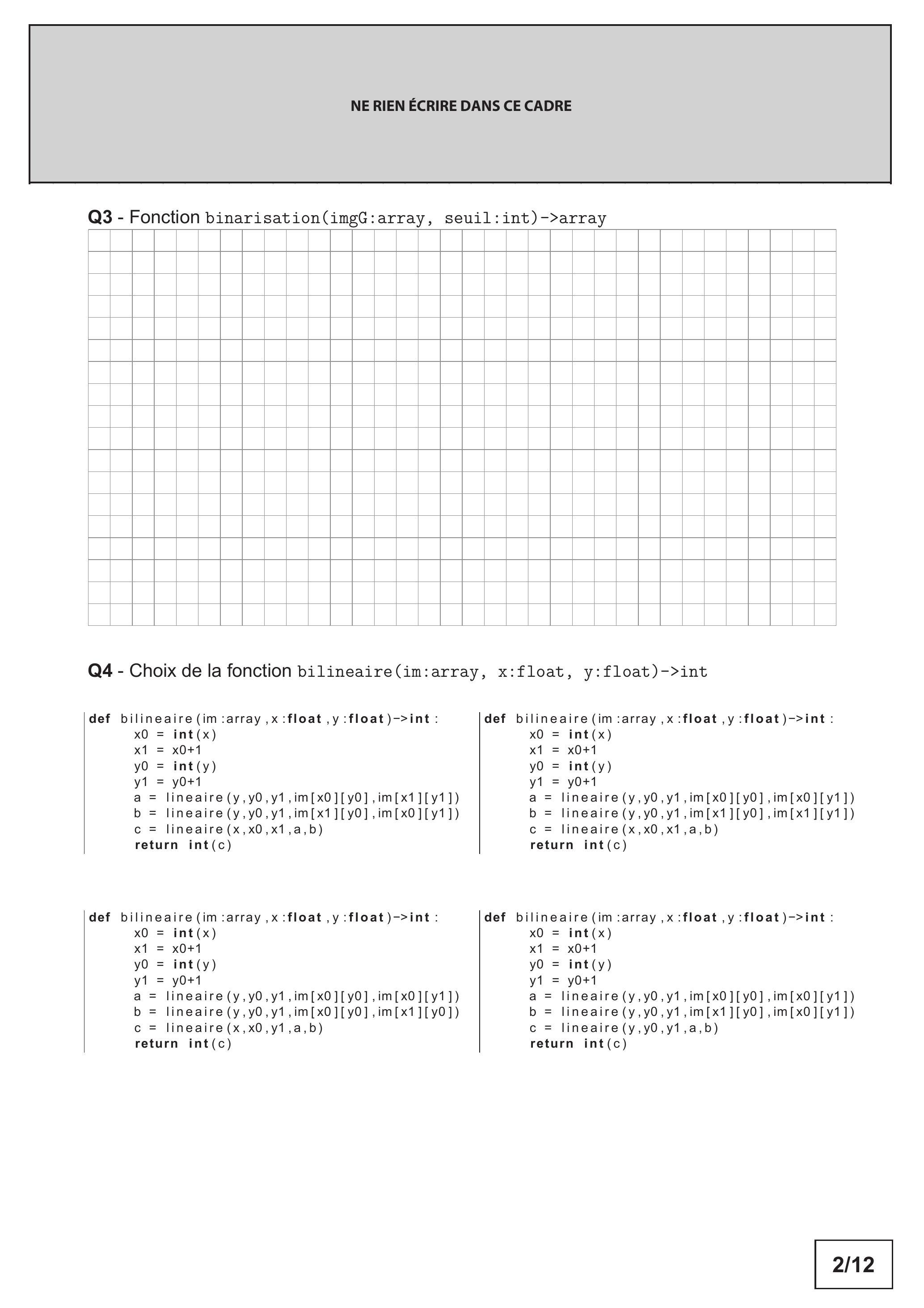 Q4. Choisir la fonction bilineaire(im:array, int parmi les quatre propositions, données dans le , permettant de respecter les spécifications.