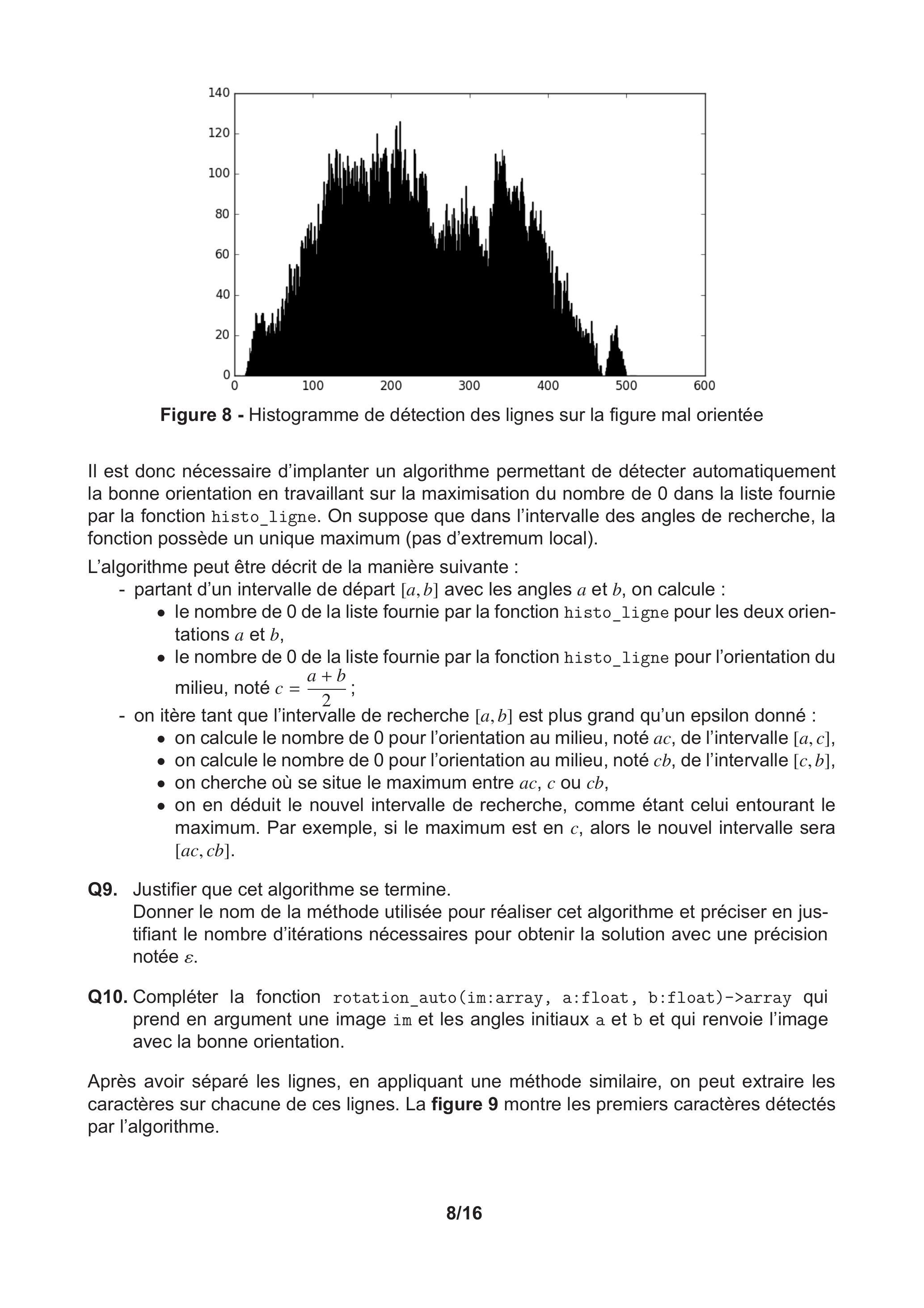 Il est donc nécessaire d'implanter un algorithme permettant de détecter automatiquement la bonne orientation en travaillant sur la maximisation du nombre de 0 dans la liste fournie par la fonction histo_ligne. On suppose que dans l'intervalle des angles de recherche, la fonction possède un unique maximum (pas d'extremum local).