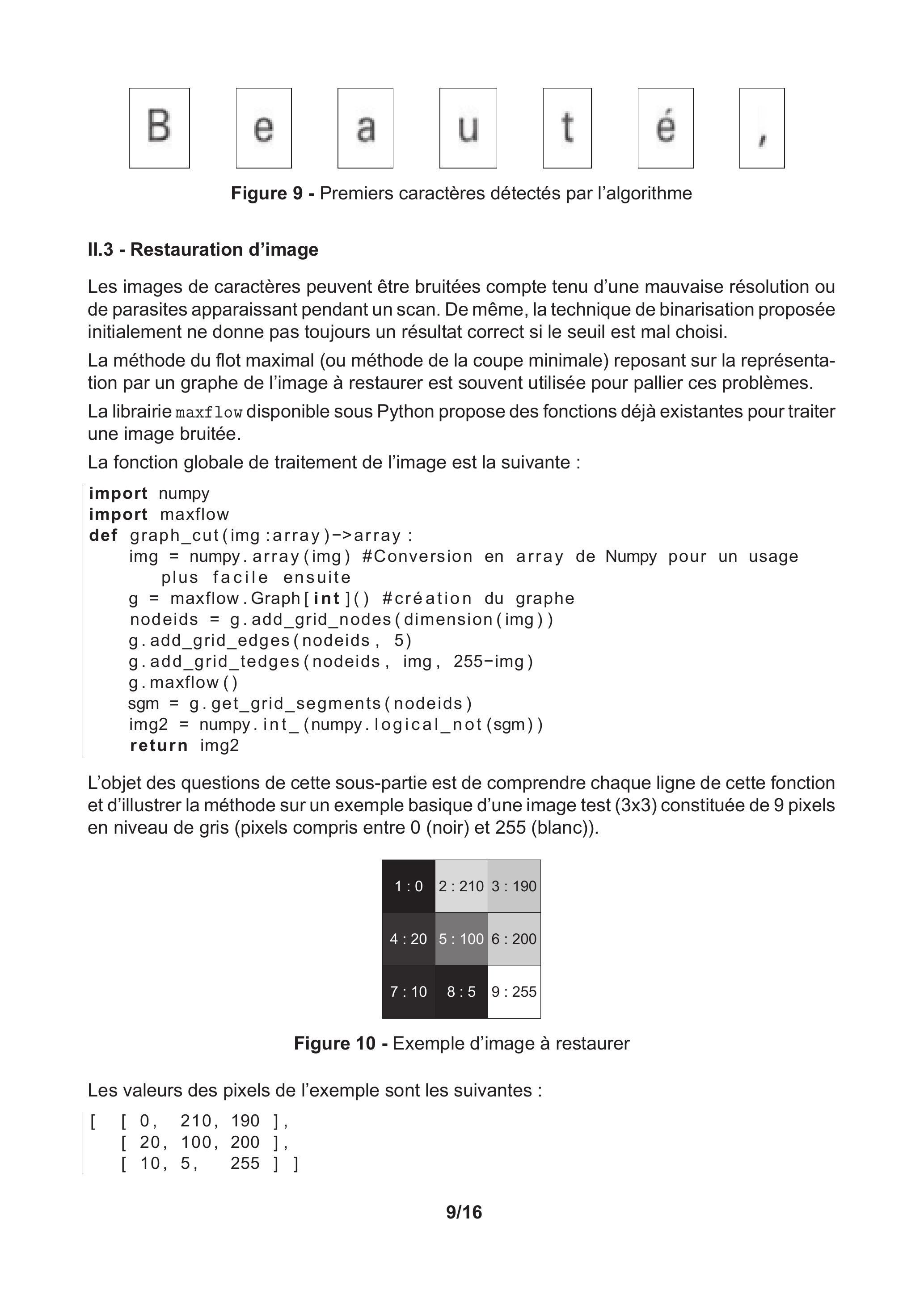L’objectif du travail proposé est de découvrir différentes étapes de la numérisation d'un document en explorant plusieurs algorithmes utilisés pour obtenir au final un document éditable conforme à l'original.