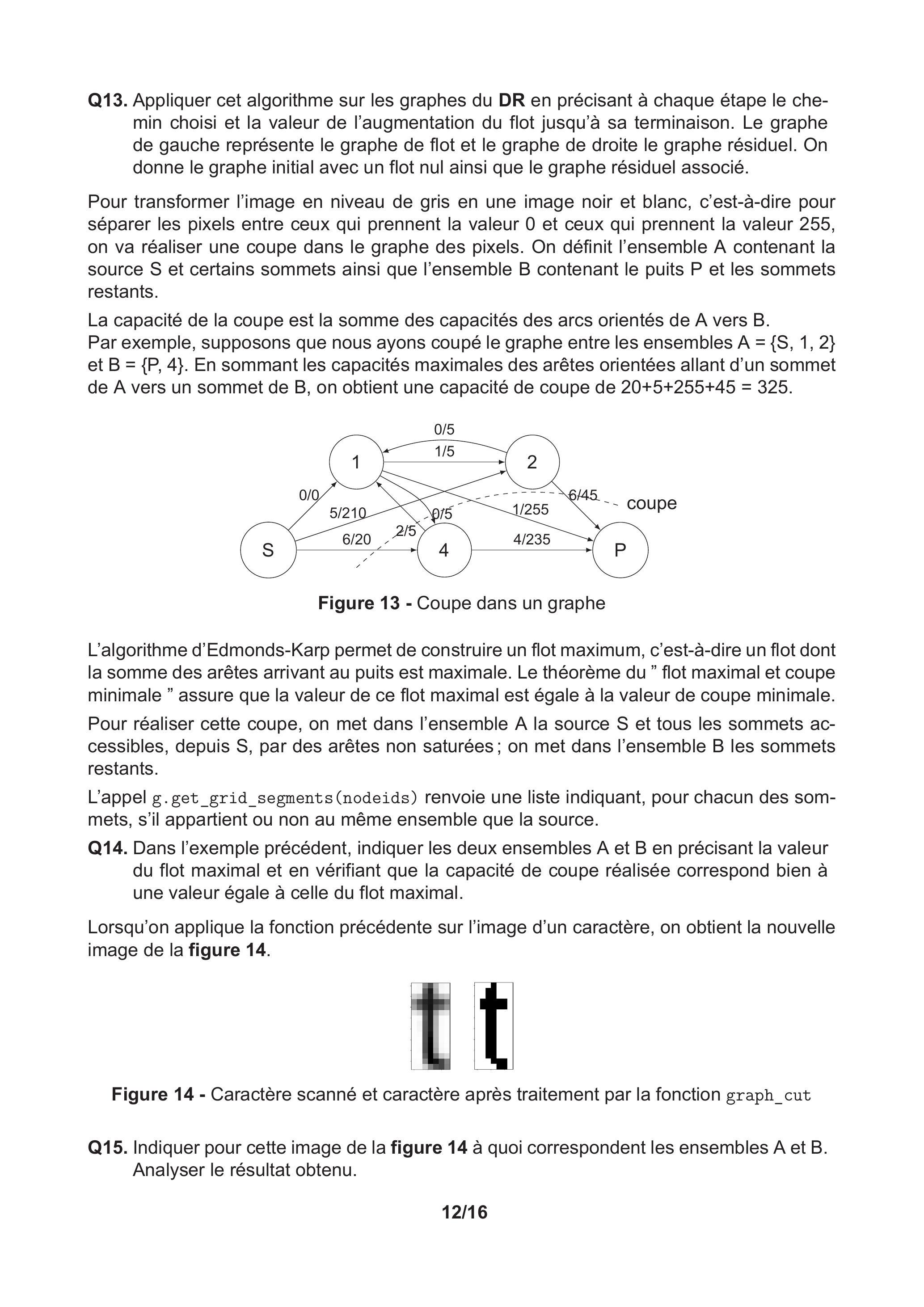 Q14 - Ensembles A et B. Flot maximal. Coupe choisie et capacité de coupe
