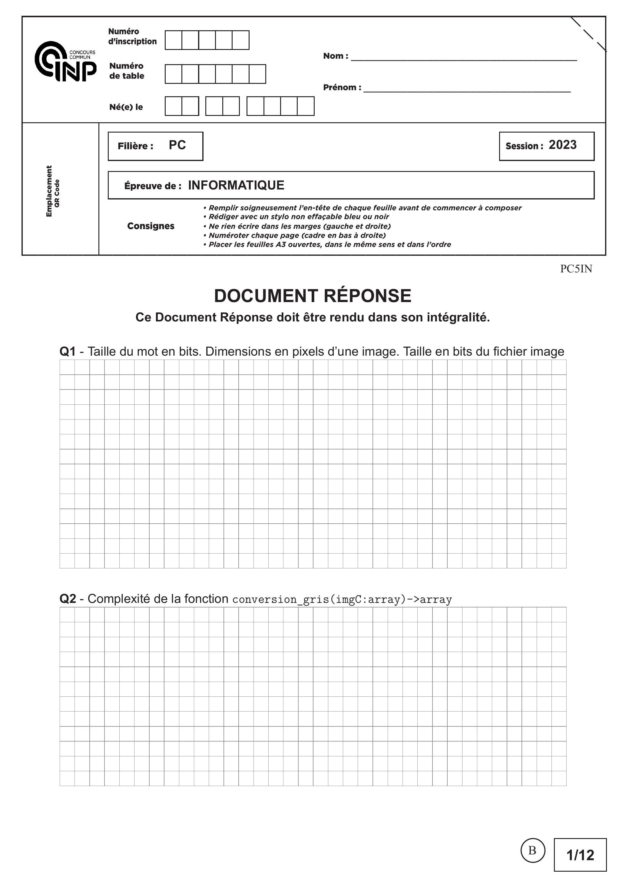CCINP Informatique Commune PC PSI 2023 - Version Web LaTeX | WikiPrépa | WikiPrépa