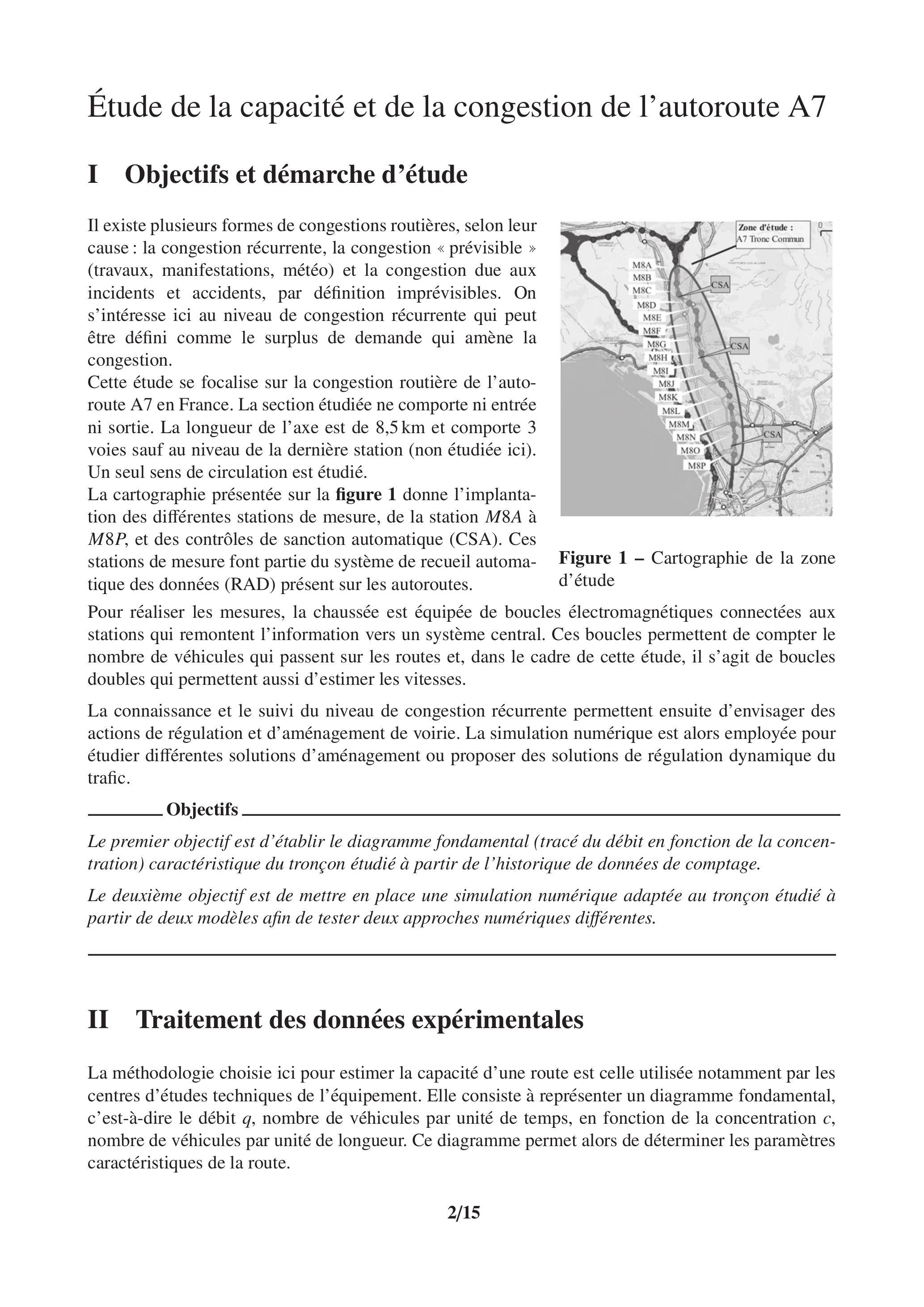 Cette étude se focalise sur la congestion routière de l'autoroute A7 en France. La section étudiée ne comporte ni entrée ni sortie. La longueur de l'axe est de et comporte 3 voies sauf au niveau de la dernière station (non étudiée ici). Un seul sens de circulation est étudié.