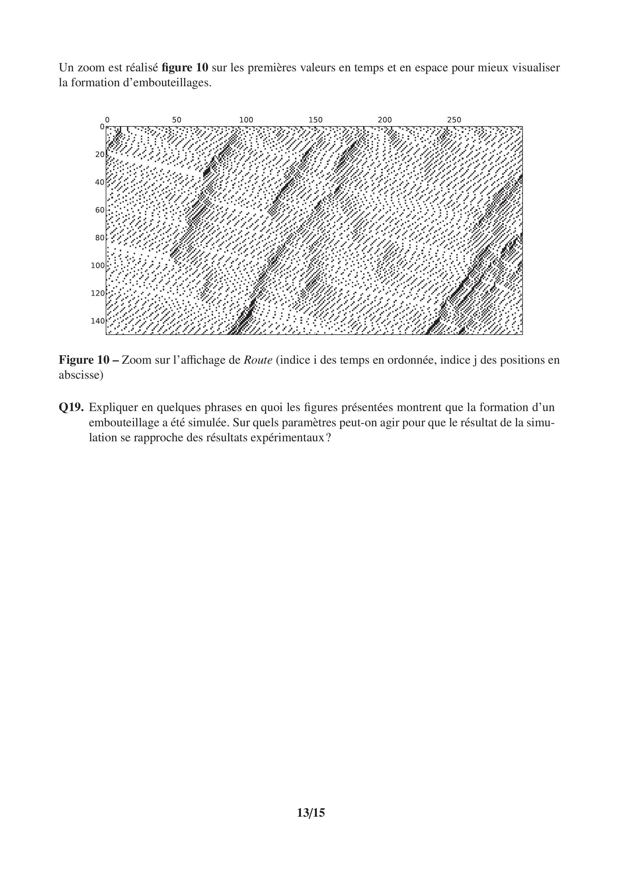 Q19. Expliquer en quelques phrases en quoi les figures présentées montrent que la formation d'un embouteillage a été simulée. Sur quels paramètres peut-on agir pour que le résultat de la simulation se rapproche des résultats expérimentaux?