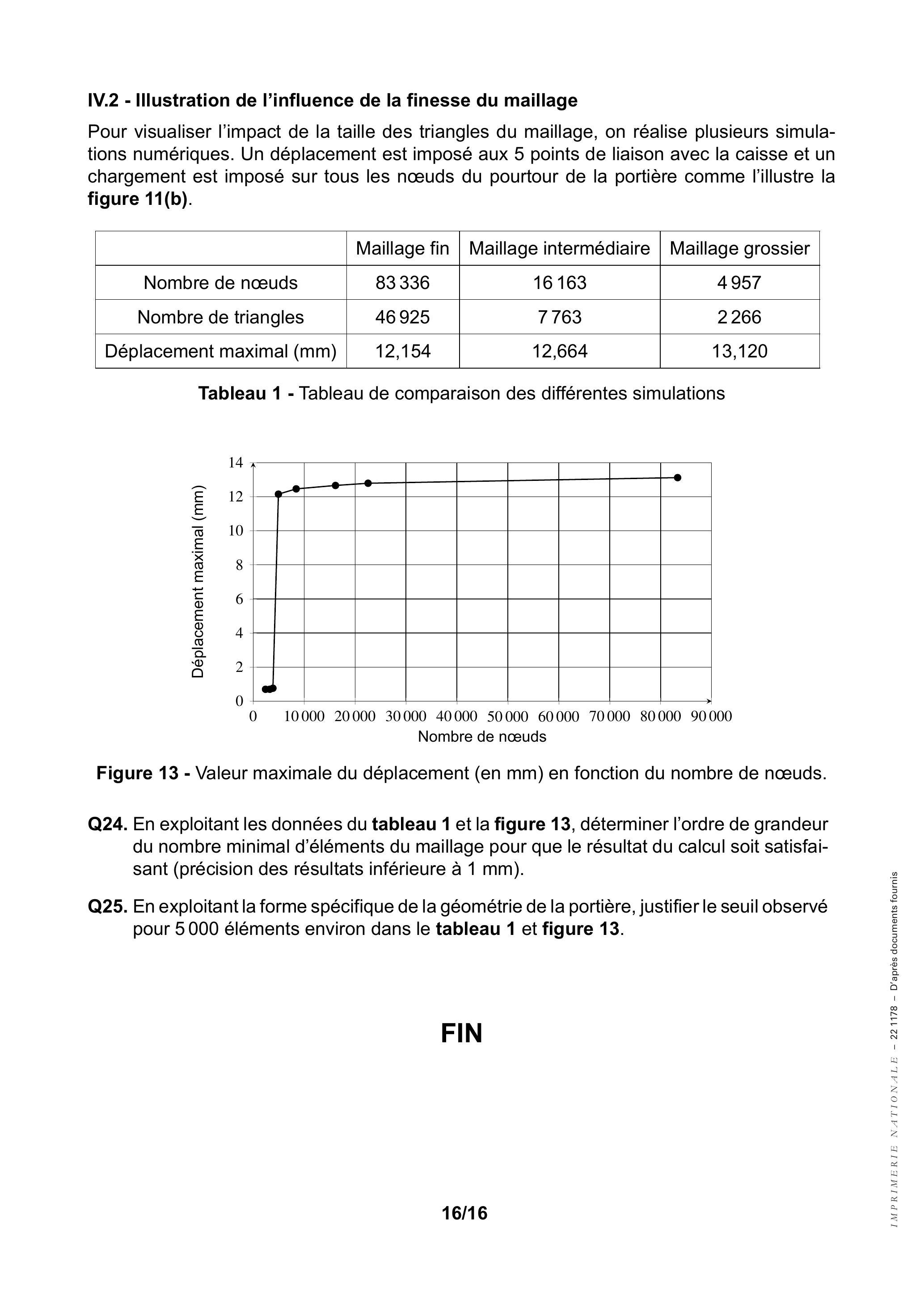 Q25.En exploitant la forme spécifique de la géométrie de la portière,justifier le seuil observé pour 5000 éléments environ dans le tableau 1 et figure 13.