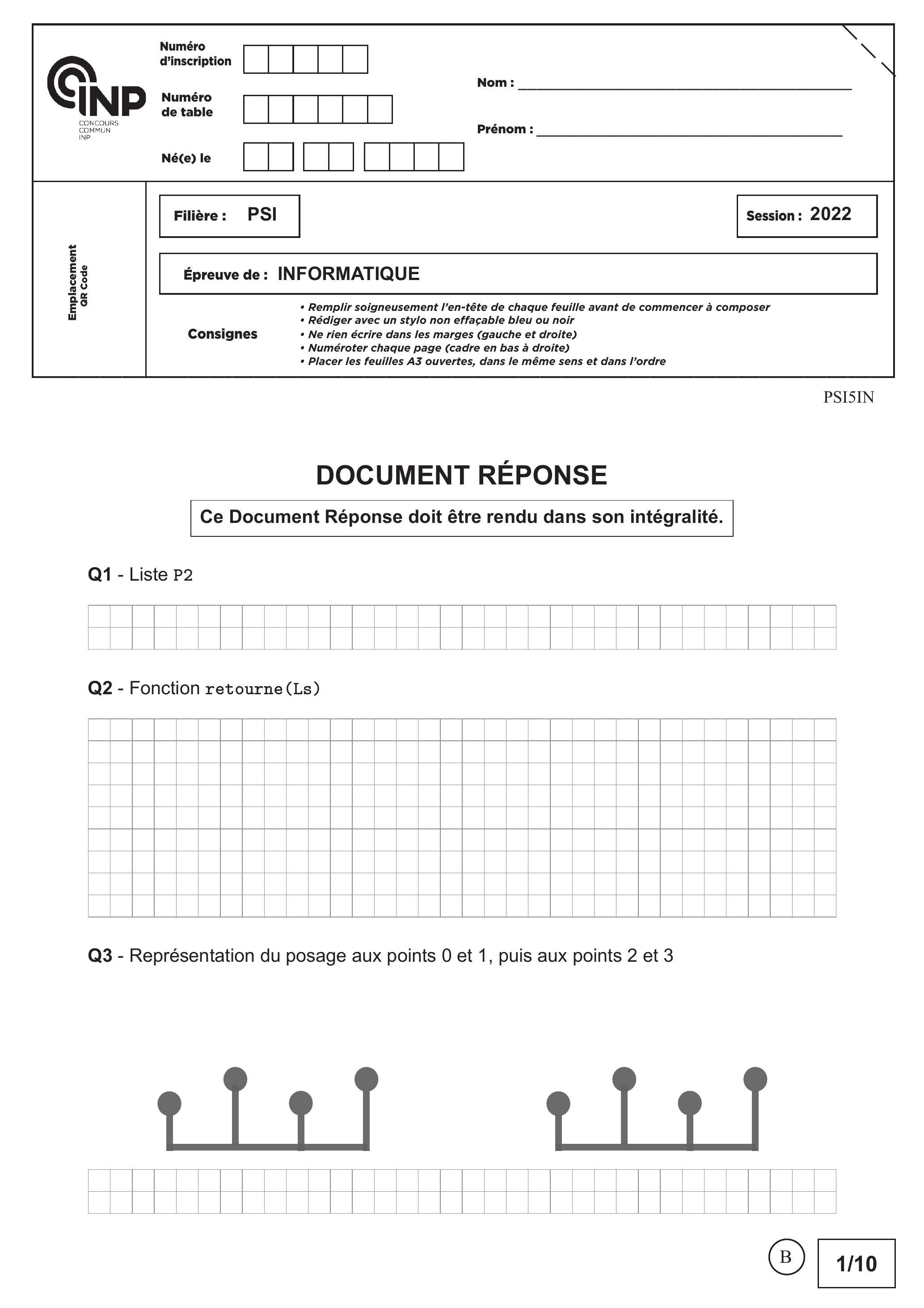 CCINP Informatique Commune PSI 2022 - Version Web LaTeX | WikiPrépa | WikiPrépa