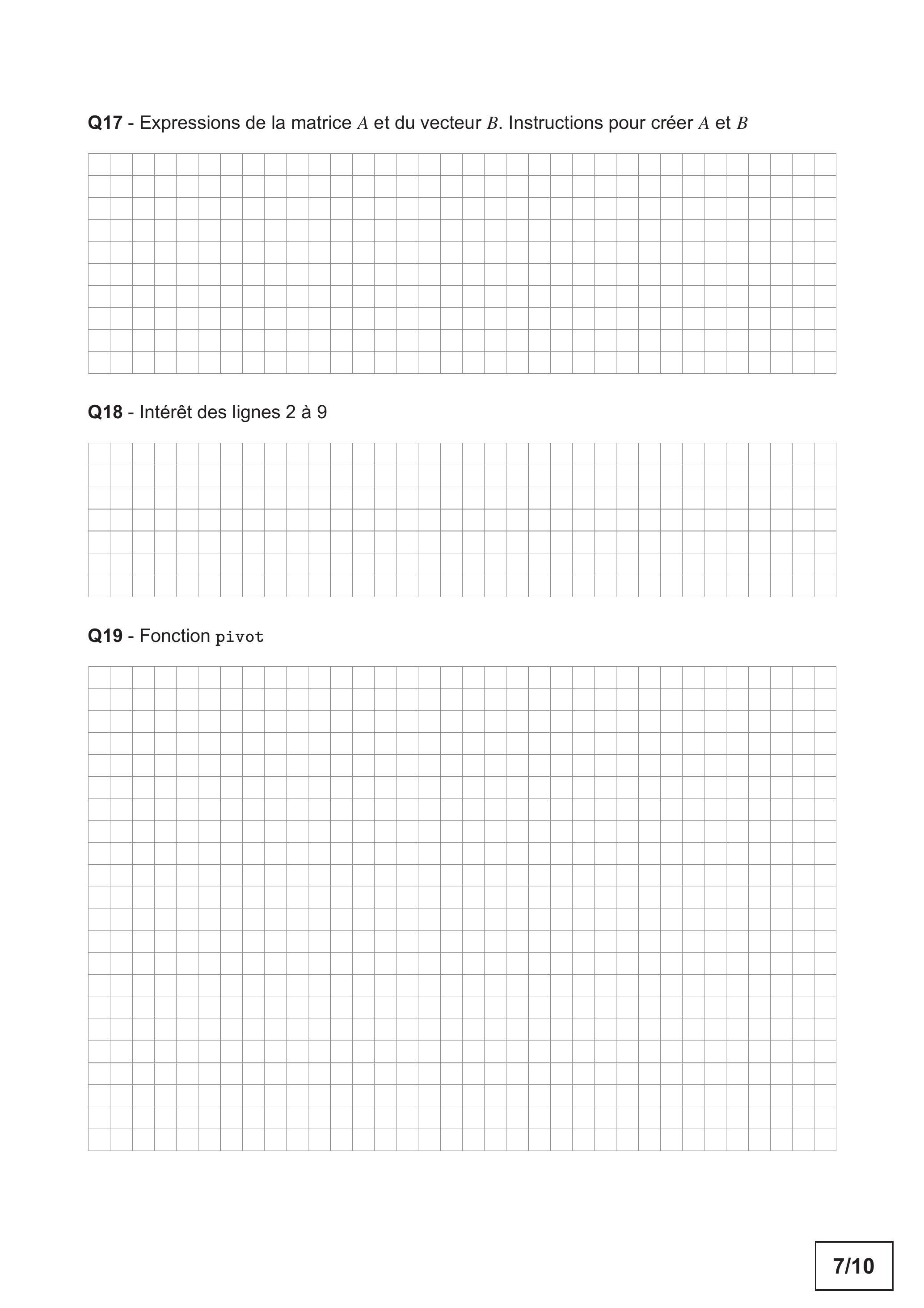 Q17 - Expressions de la matrice et du vecteur . Instructions pour créer et