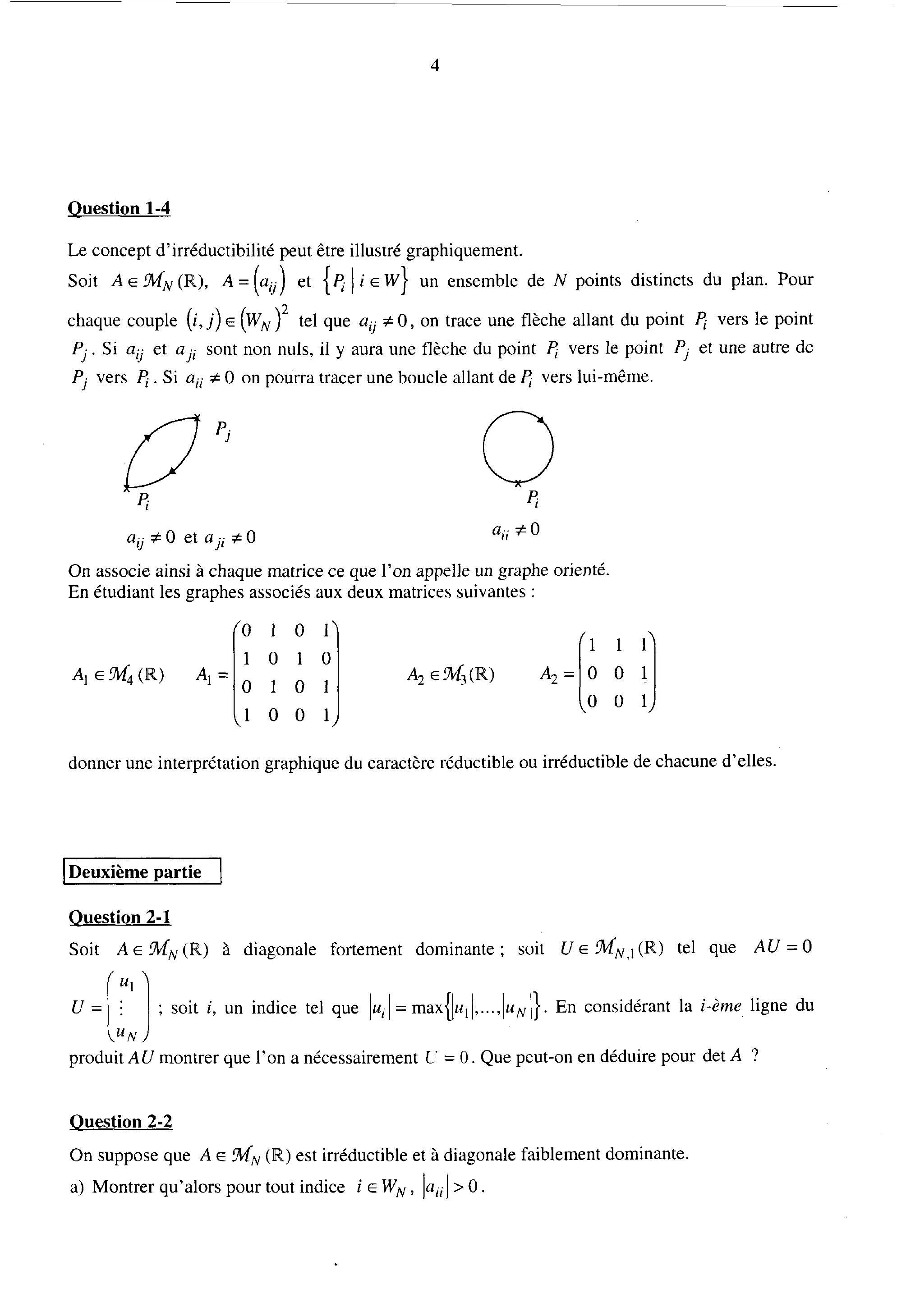 c) Montrer que est irréductible si et seulement s'il n'existe pas de matrice de permutation telle que soit de la forme :