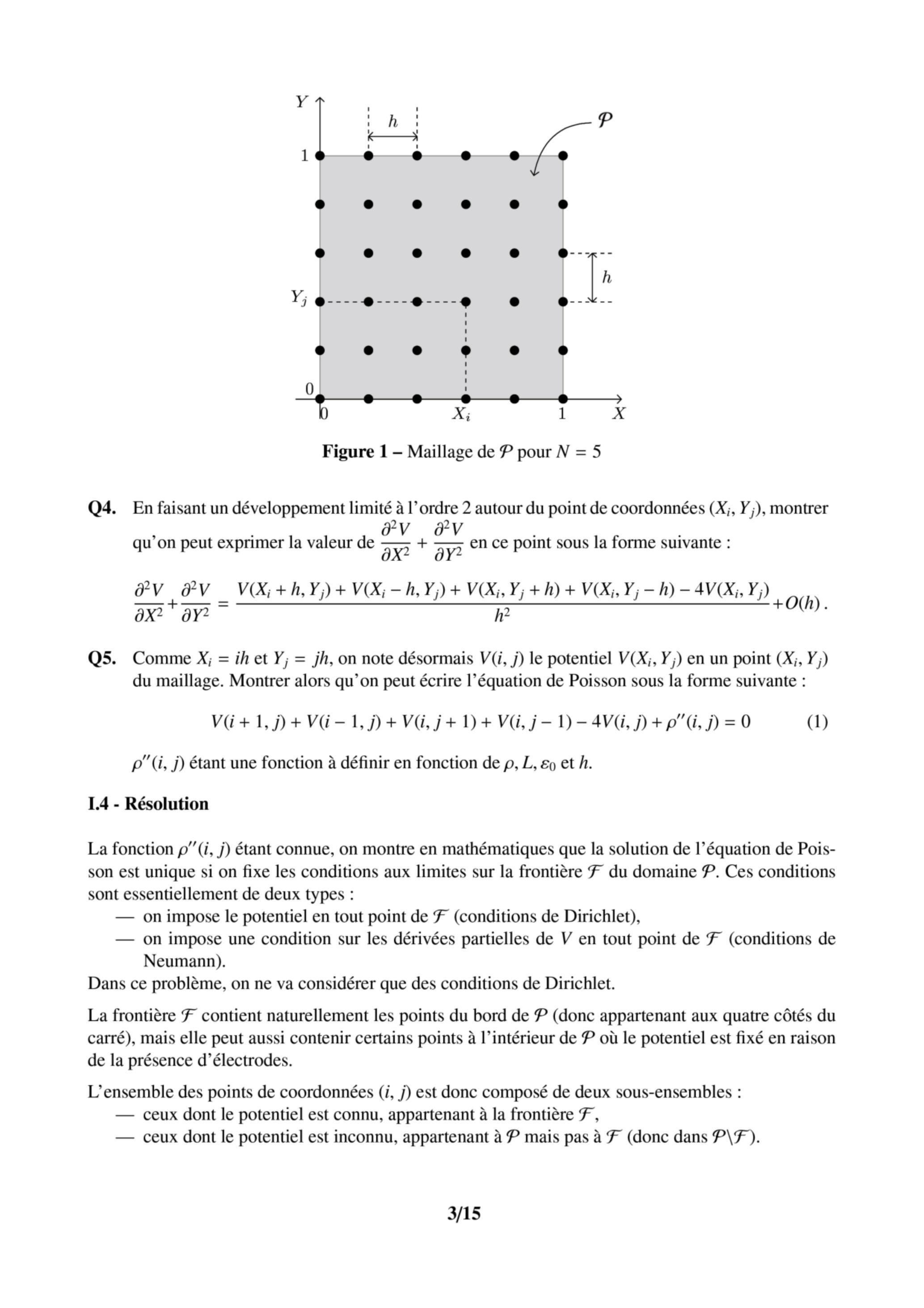 Q5. Comme et , on note désormais le potentiel en un point du maillage. Montrer alors qu'on peut écrire l'équation de Poisson sous la forme suivante :