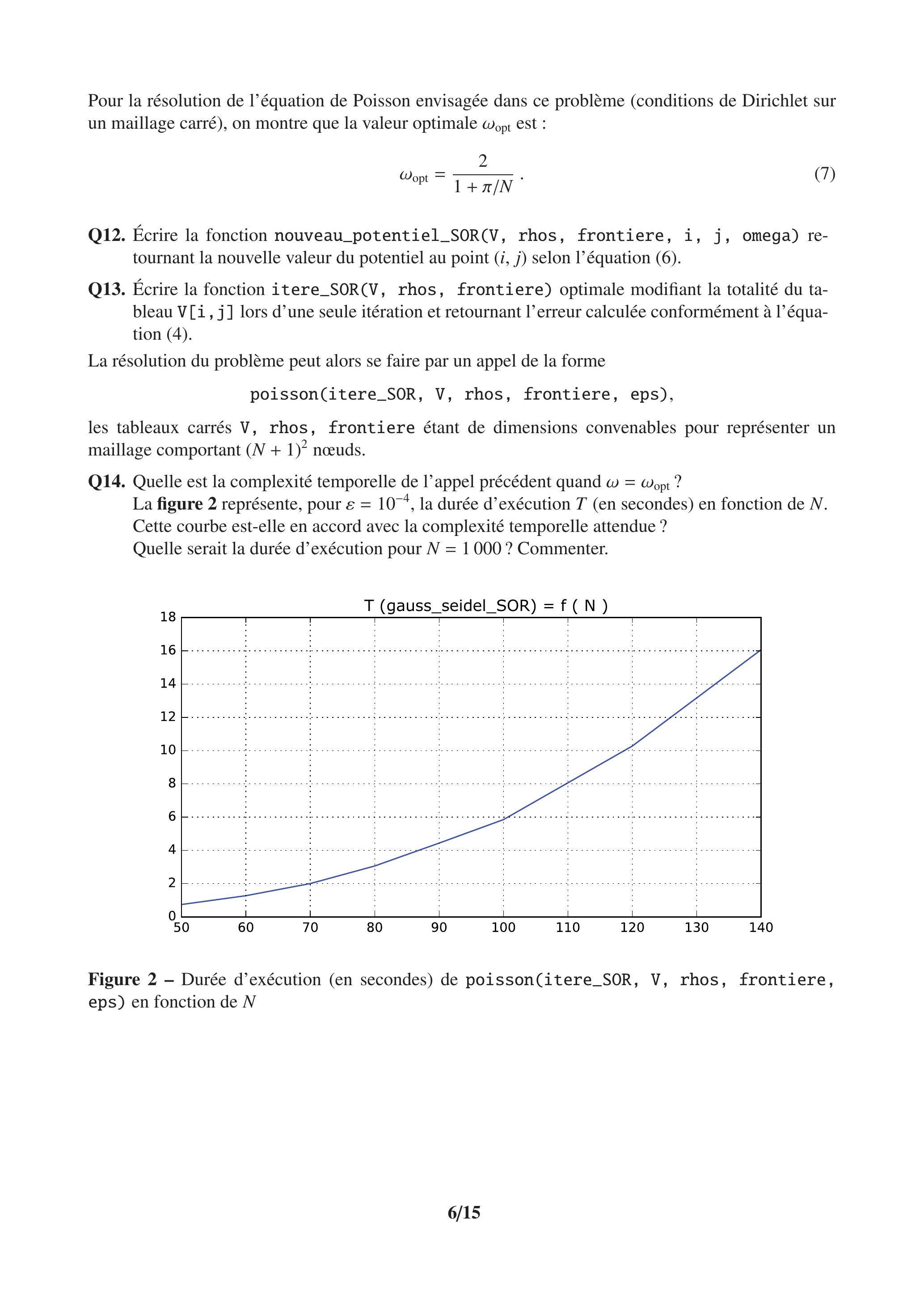 Q13. Écrire la fonction itere_SOR(V, rhos, frontiere) optimale modifiant la totalité du tableau V [i,j] lors d'une seule itération et retournant l'erreur calculée conformément à l'équation (4).