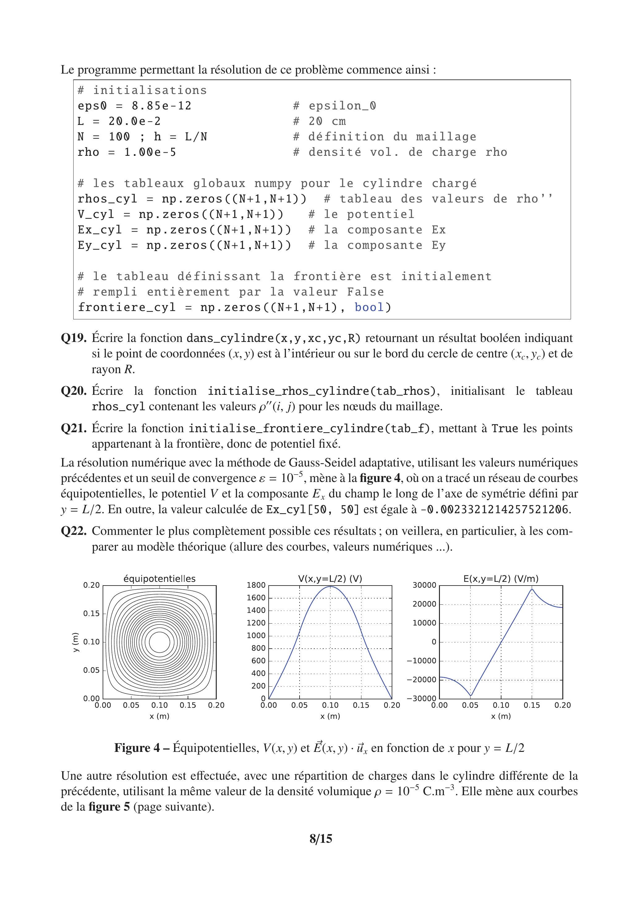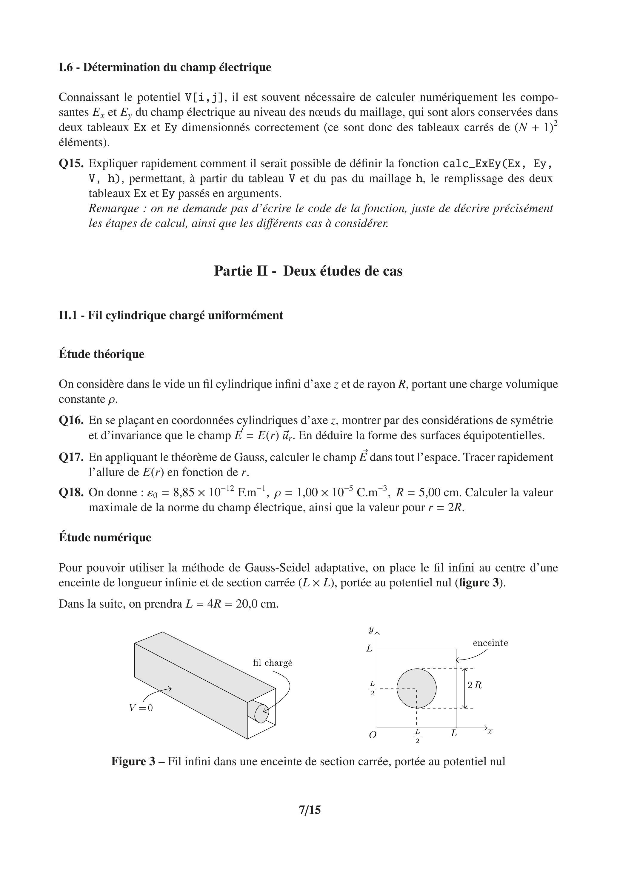 Ce problème s'intéresse à la résolution numérique de quelques problèmes d'électrostatique. Il se compose de deux parties.