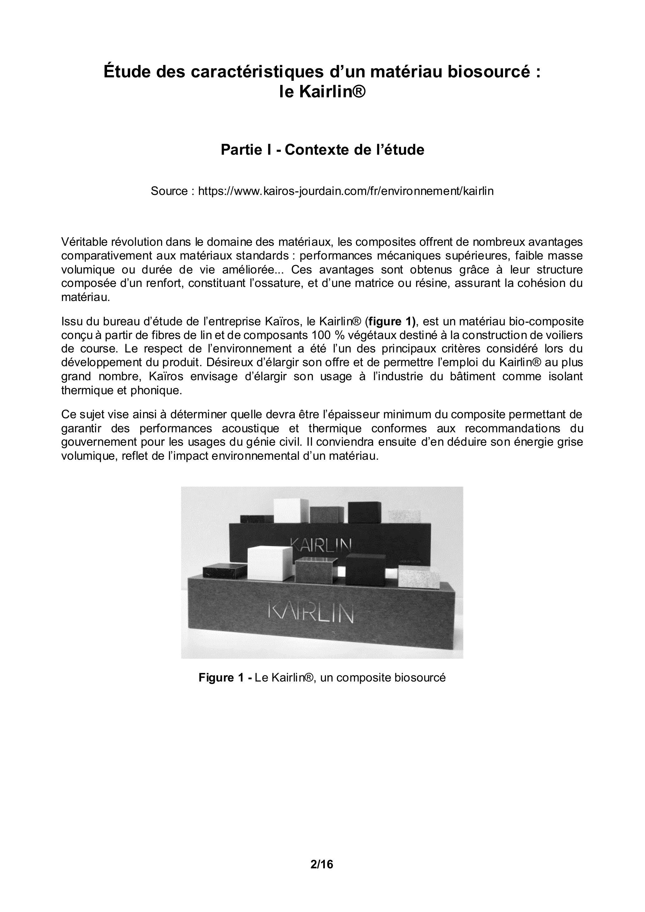 Issu du bureau d'étude de l'entreprise Kaïros, le Kairlin® (figure 1), est un matériau bio-composite conçu à partir de fibres de lin et de composants végétaux destiné à la construction de voiliers de course. Le respect de l'environnement a été l'un des principaux critères considéré lors du développement du produit. Désireux d'élargir son offre et de permettre l'emploi du Kairlin® au plus grand nombre, Kaïros envisage d'élargir son usage à l'industrie du bâtiment comme isolant thermique et phonique.