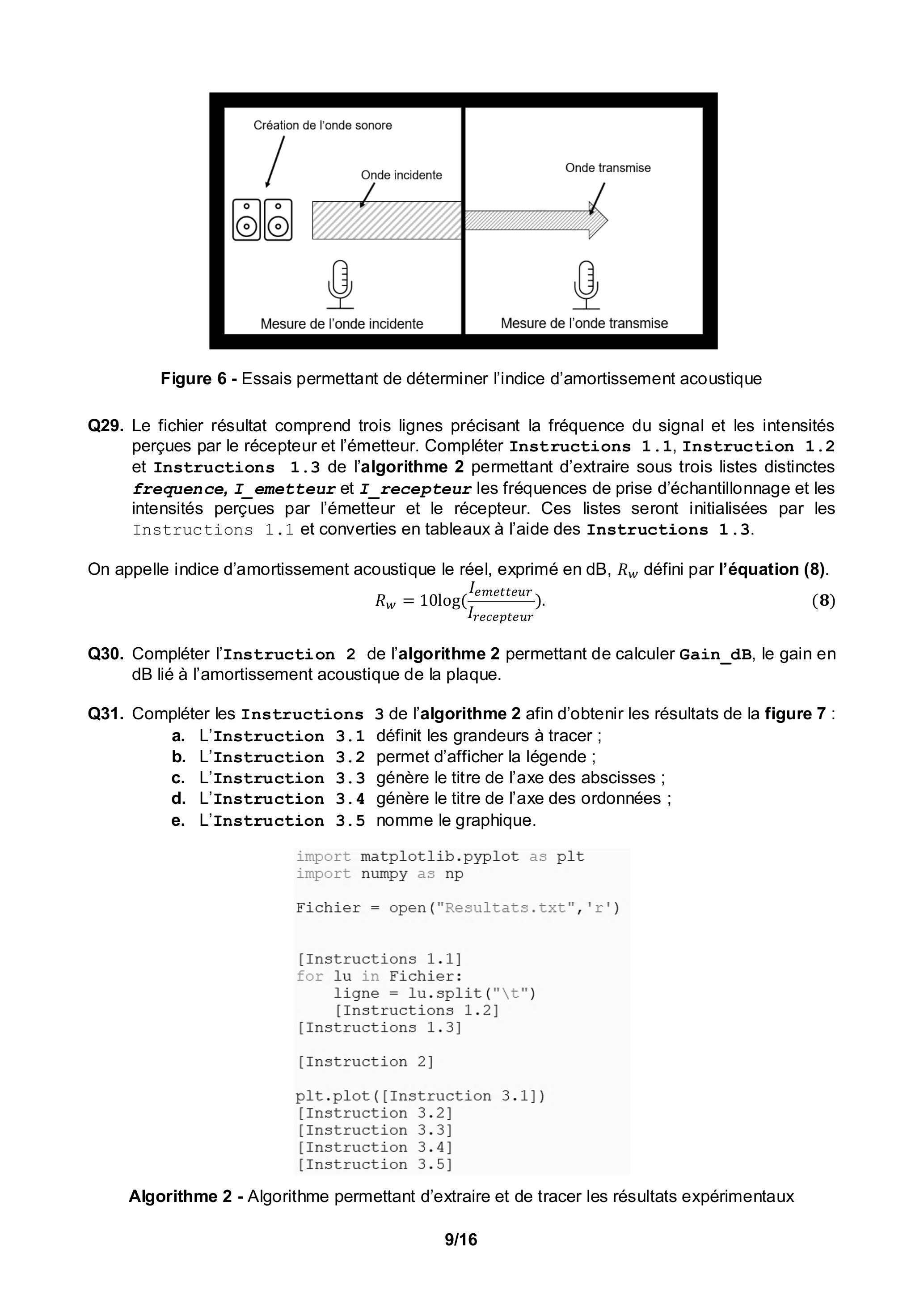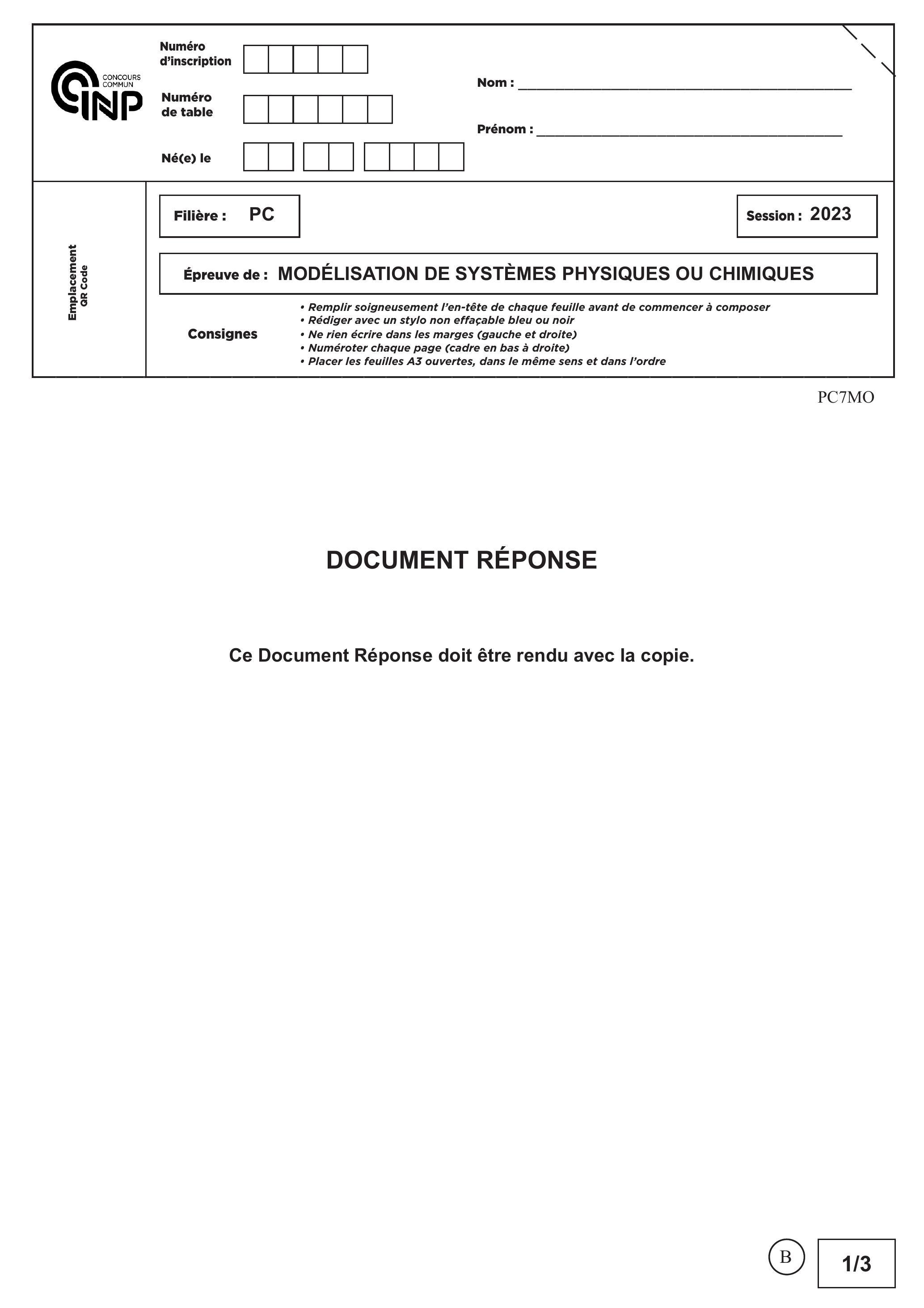Le Document Réponse doit être rendu dans son intégralité avec la copie.