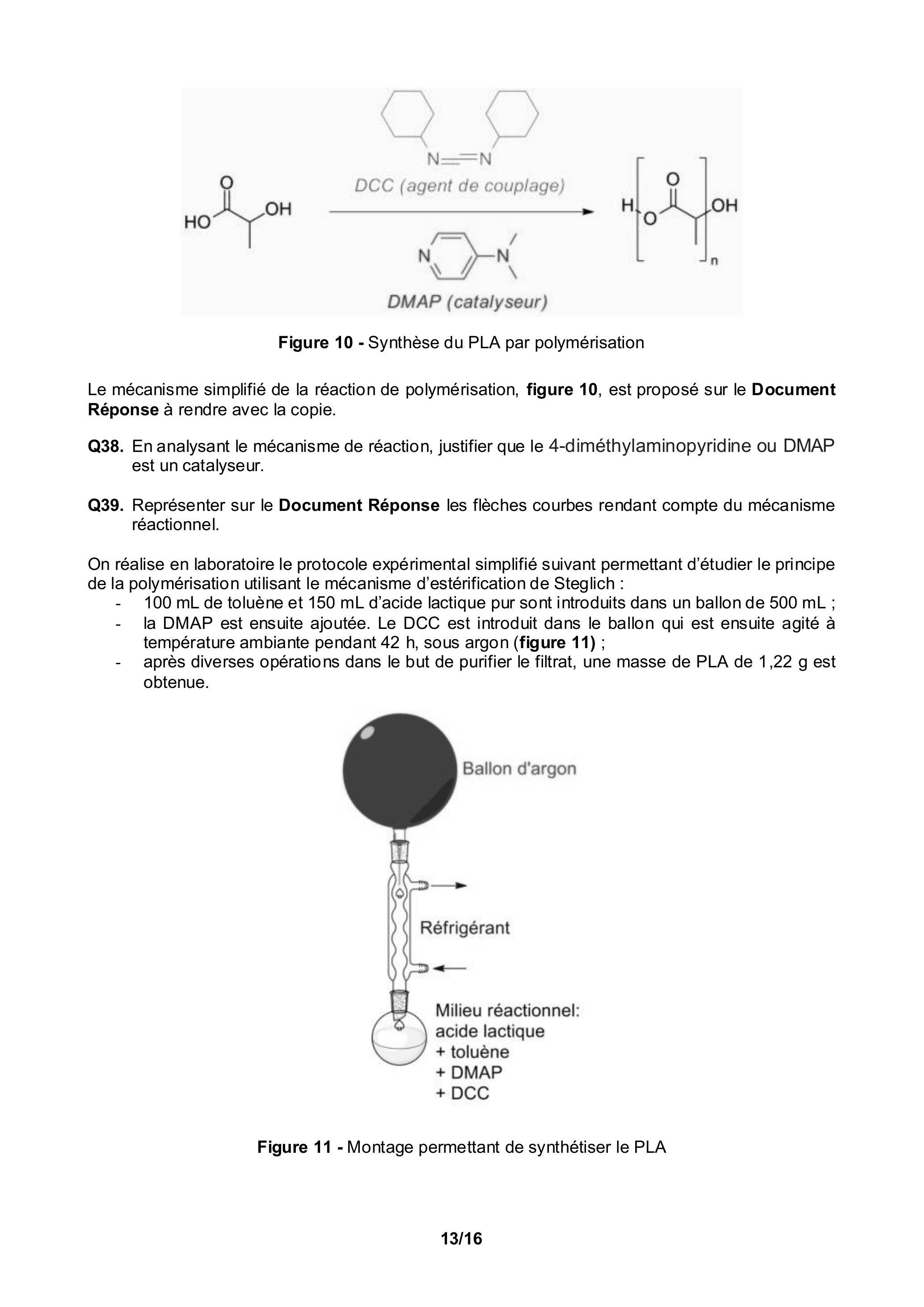 Le mécanisme simplifié de la réaction de polymérisation, figure 10, est proposé sur le Document Réponse à rendre avec la copie.