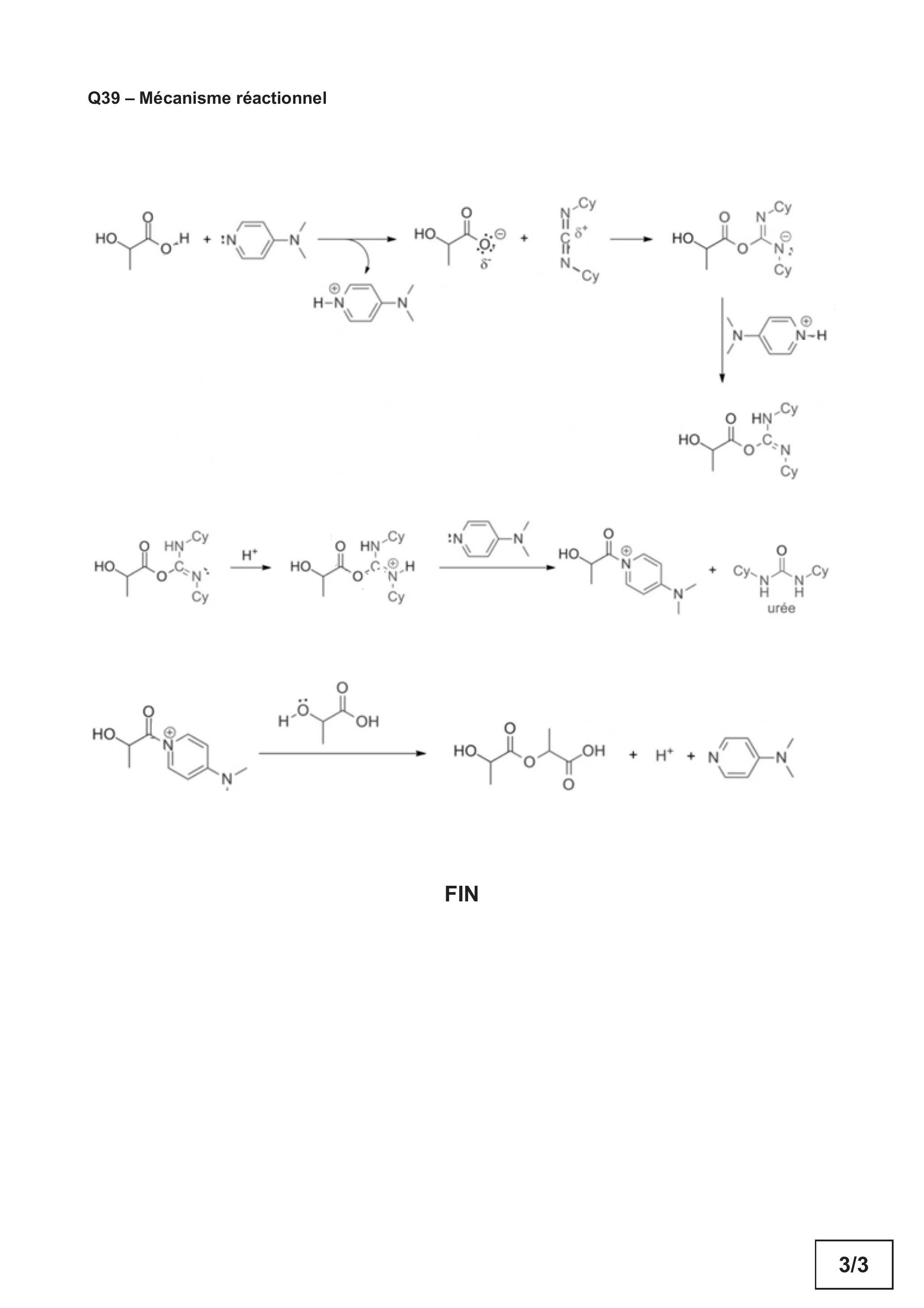 Q39. Représenter sur le Document Réponse les flèches courbes rendant compte du mécanisme réactionnel.