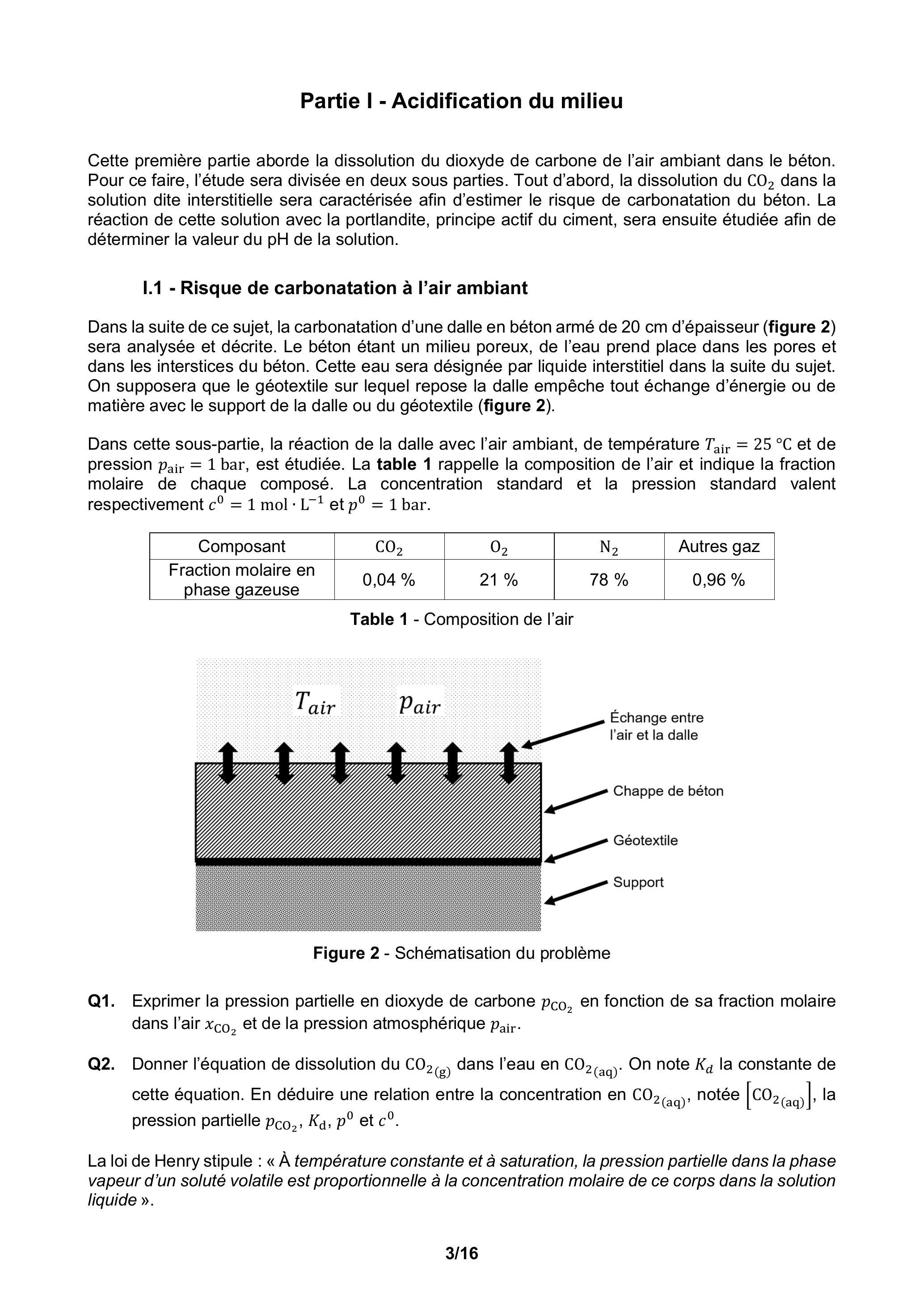 Q12. En déduire la valeur de . Y a-t-il risque de carbonatation à l'air ambiant? Pourquoi?