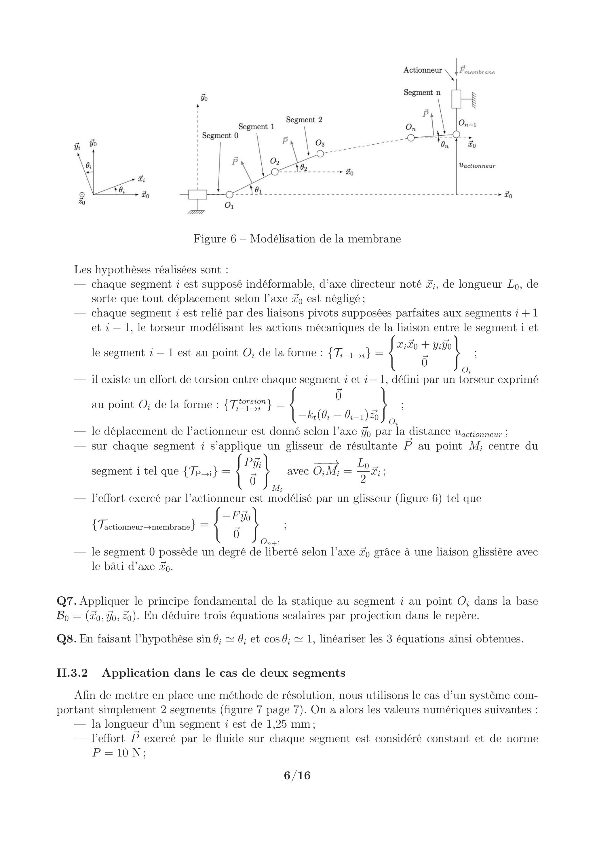 Q7. Appliquer le principe fondamental de la statique au segment au point dans la base . En déduire trois équations scalaires par projection dans le repère.