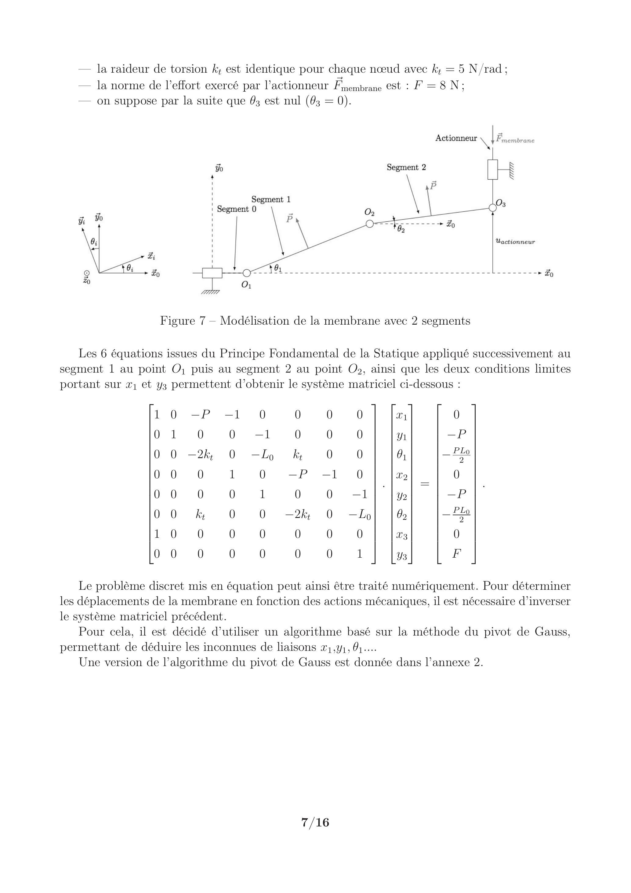 Le comportement de la membrane est modélisé par un assemblage de segments reliés entre eux par des liaisons pivots comme décrit sur la figure 6 page 6 .