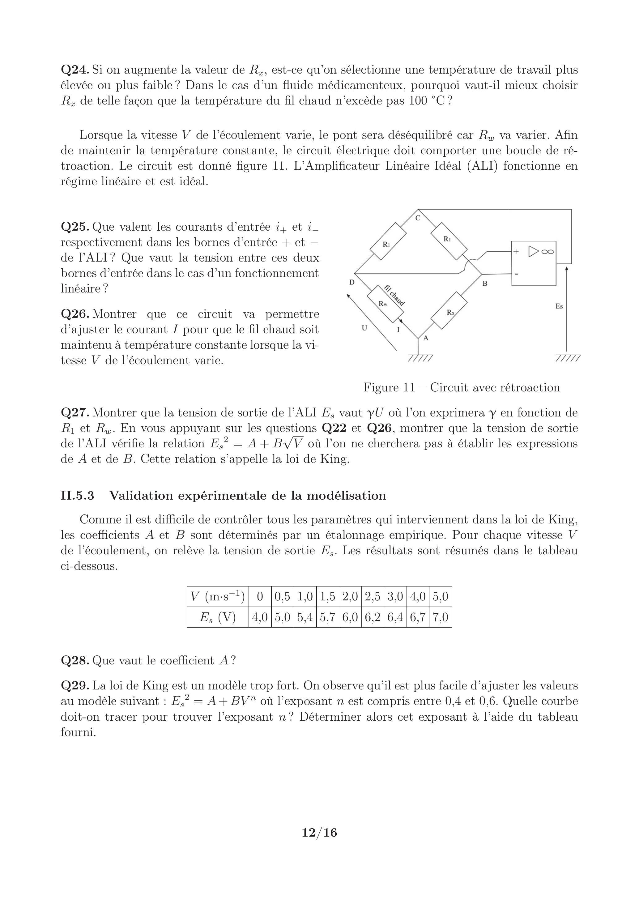 Les développements mathématiques, les schémas, les graphes et les courbes seront rendus dans leur forme définitive sur la copie (les brouillons ne seront pas acceptés).