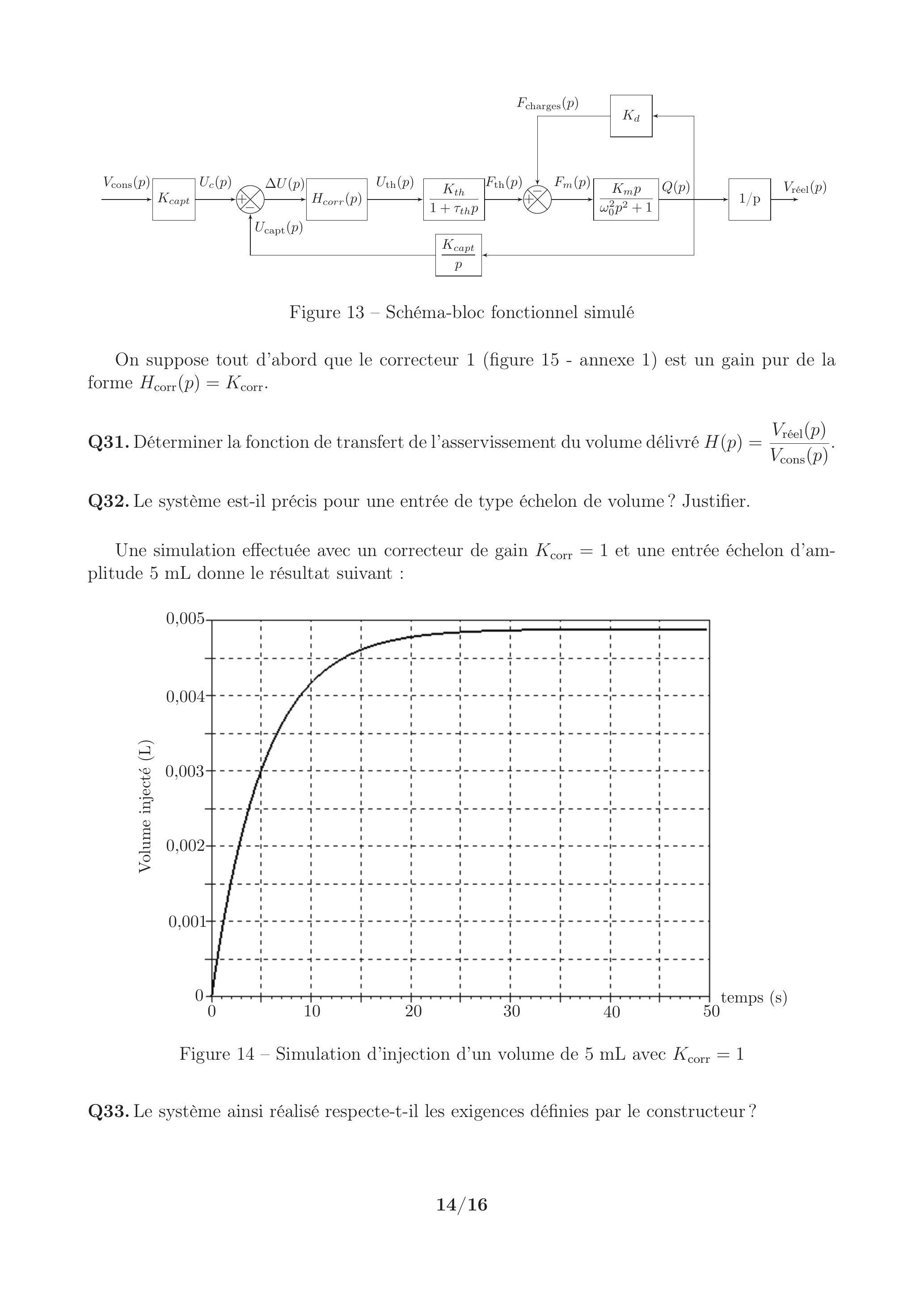 Q31. Déterminer la fonction de transfert de l'asservissement du volume délivré é.