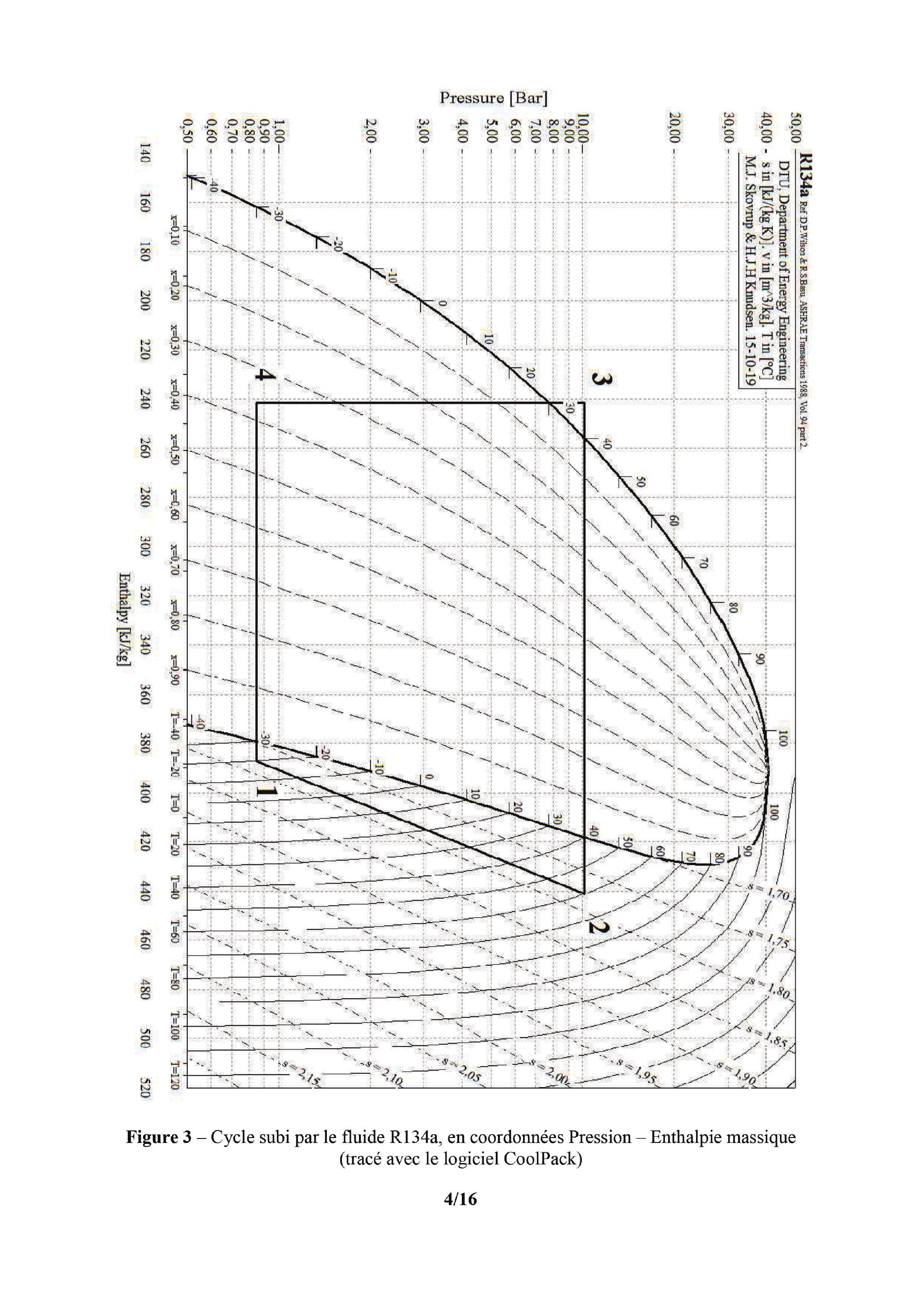 La figure 3 (page suivante) représente en coordonnées (pression P , enthalpie massique h ), les transformations subies par ce fluide au cours d'un cycle :