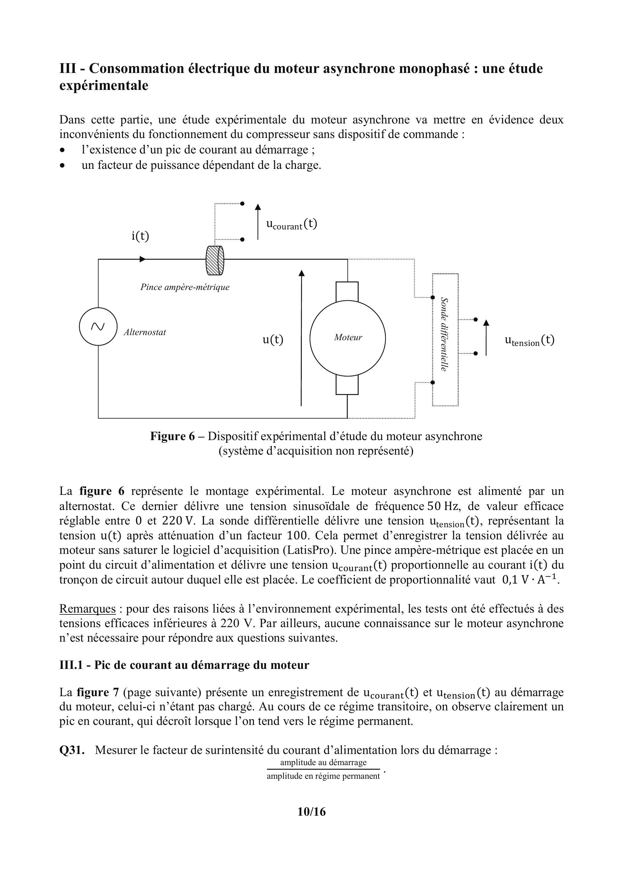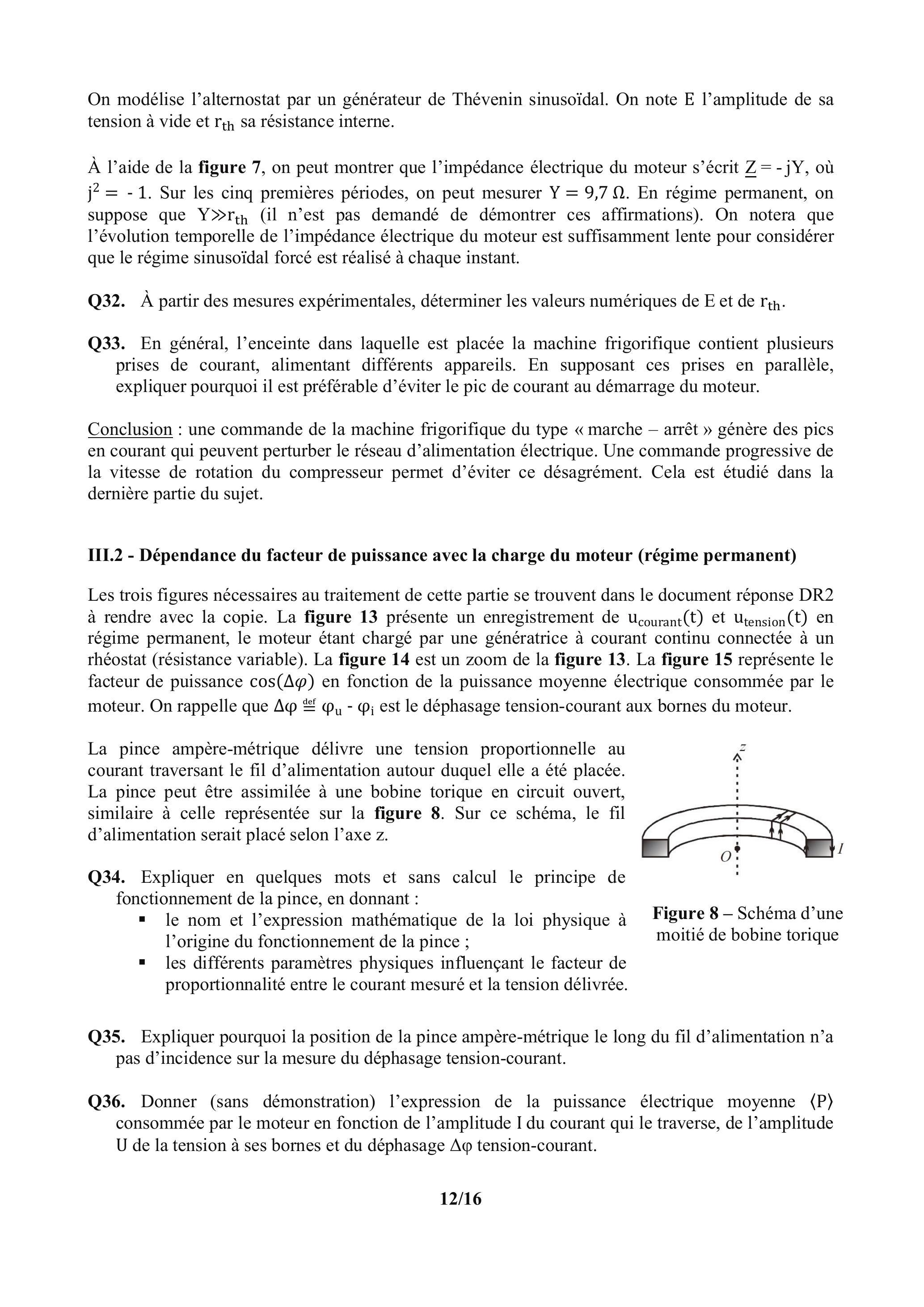 Le sujet est composé de 16 pages d'énoncé et de 8 pages de document réponse.