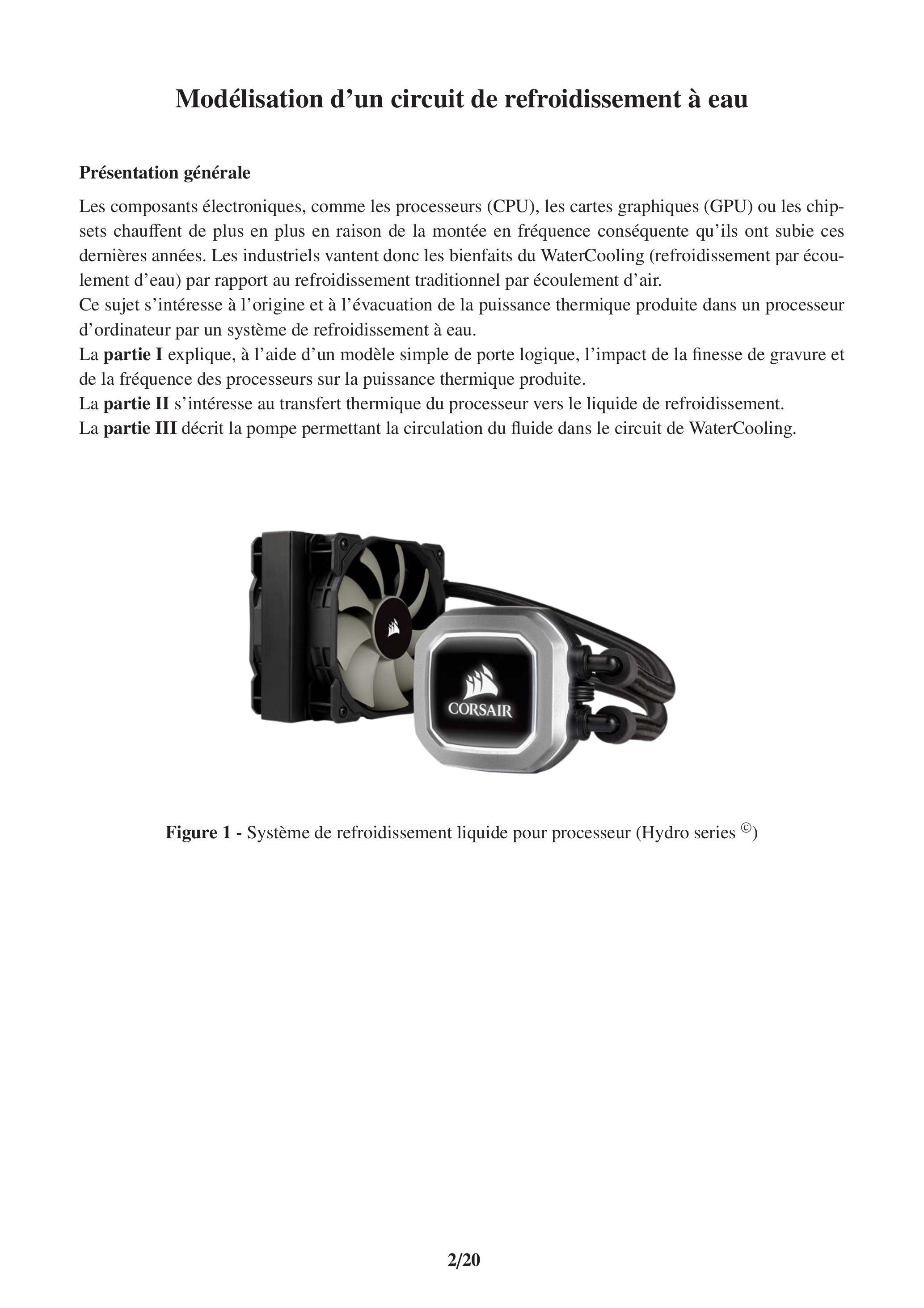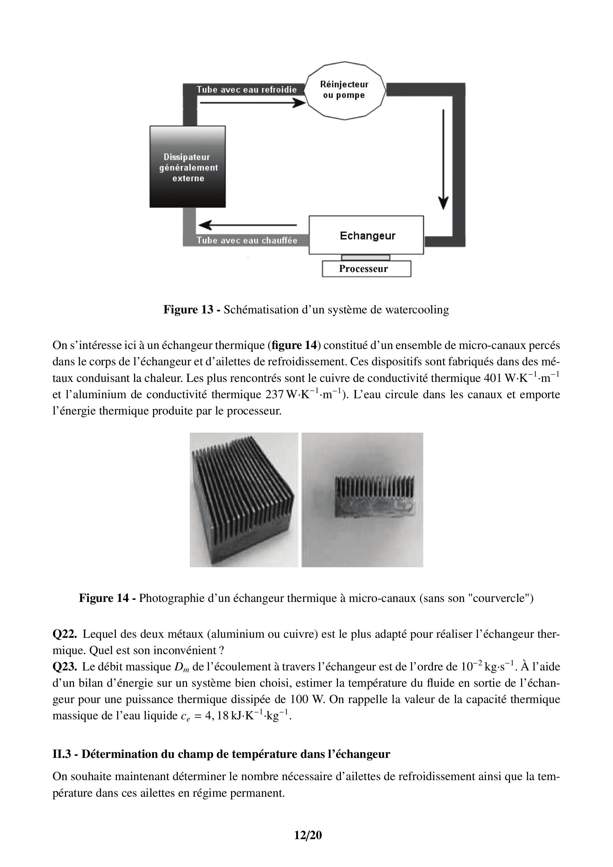 Ce sujet s'intéresse à l'origine et à l'évacuation de la puissance thermique produite dans un processeur d'ordinateur par un système de refroidissement à eau.