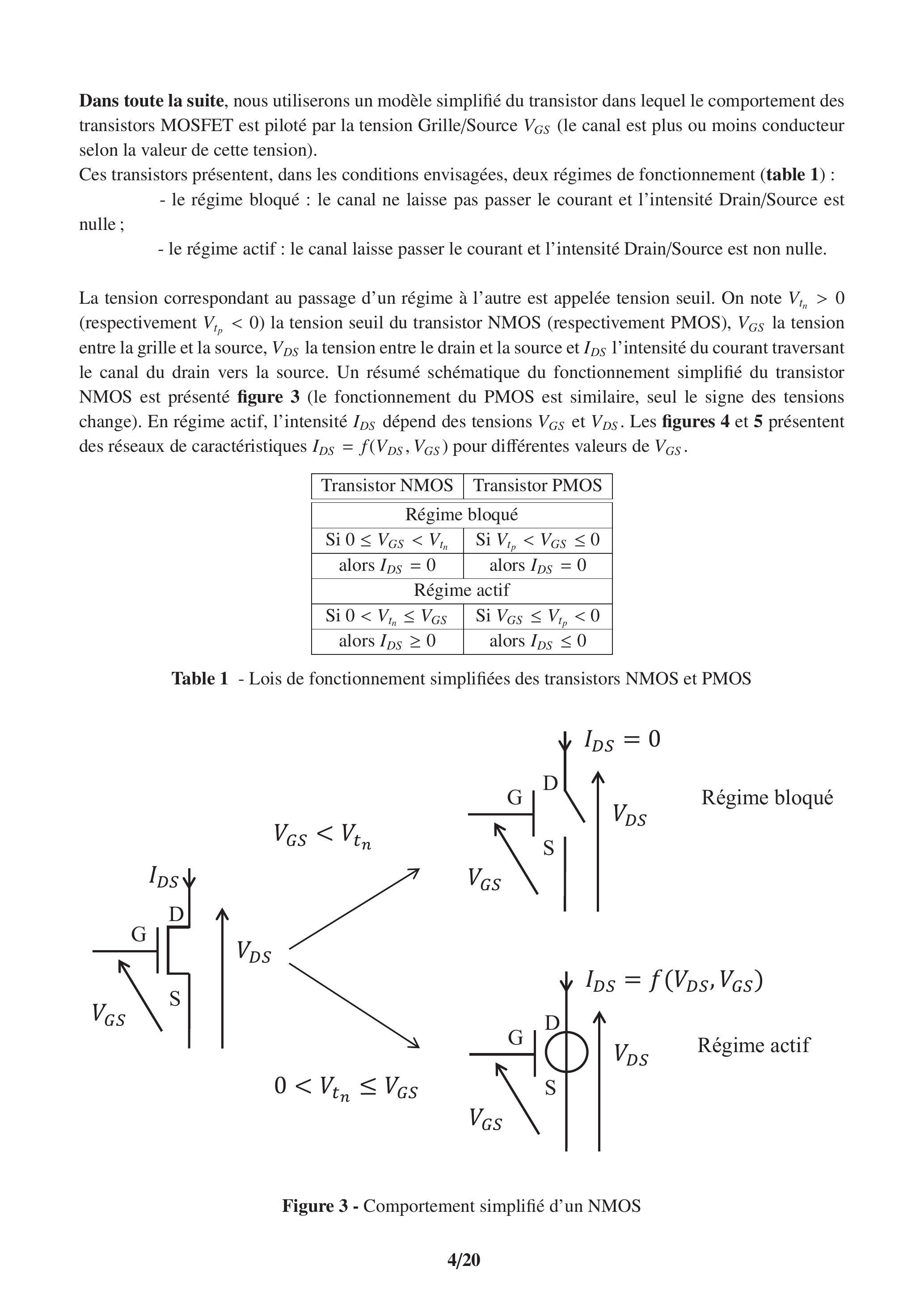 Table 1 - Lois de fonctionnement simplifiées des transistors NMOS et PMOS