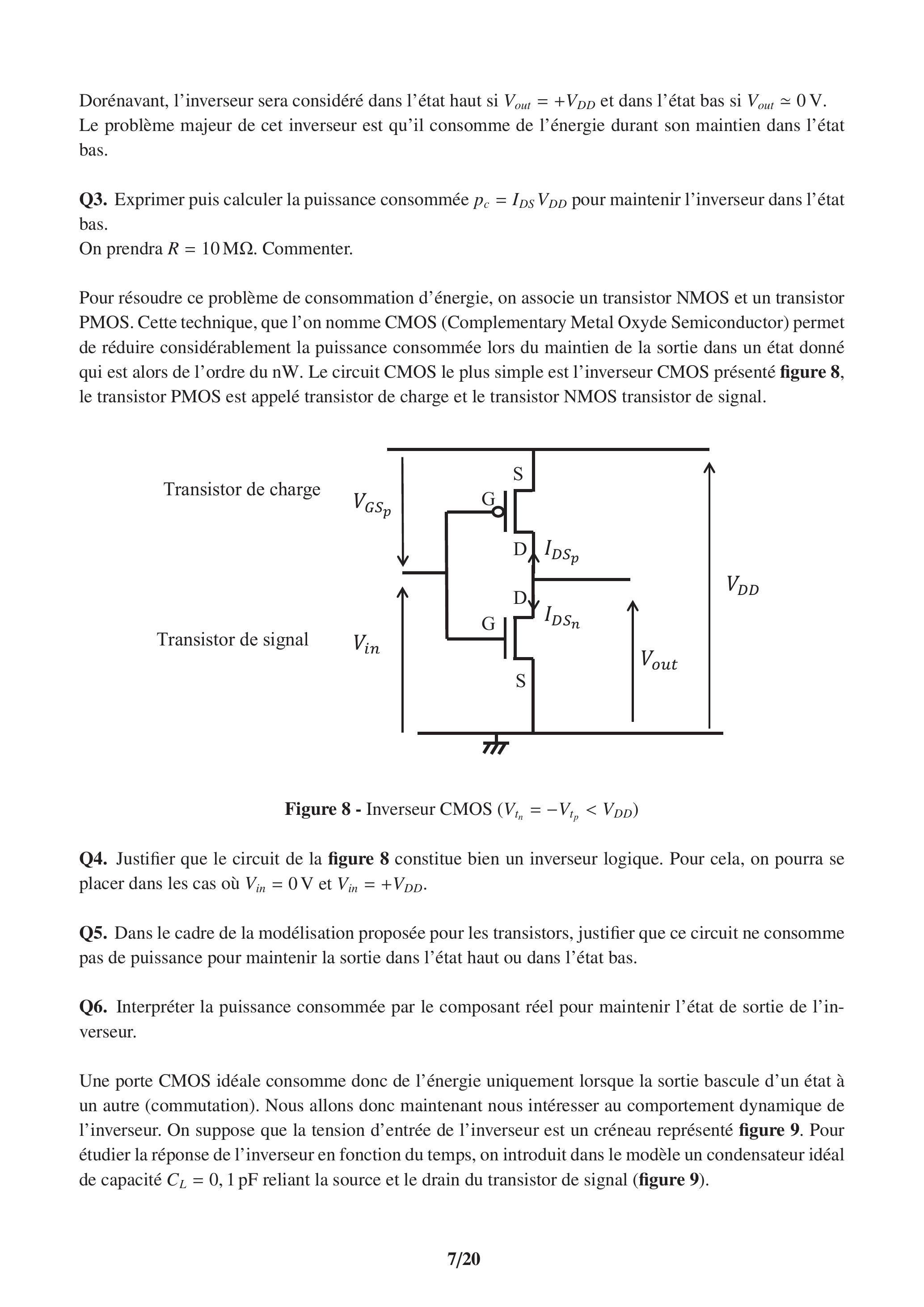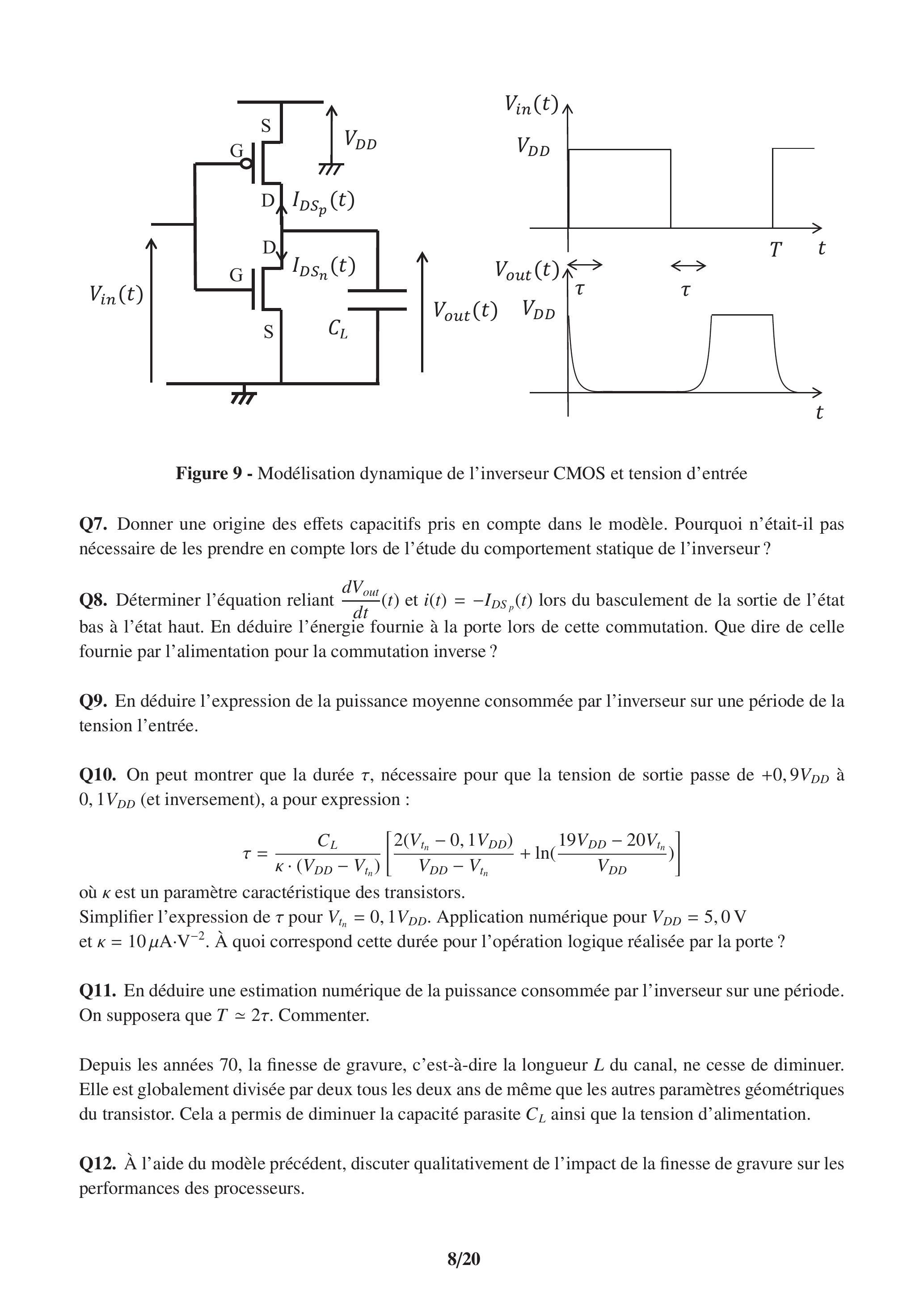 Q13. Avec la diminution de la taille des transistors, la puissance consommée en fonctionnement statique de l'inverseur CMOS augmente. Expliquer qualitativement cette augmentation.