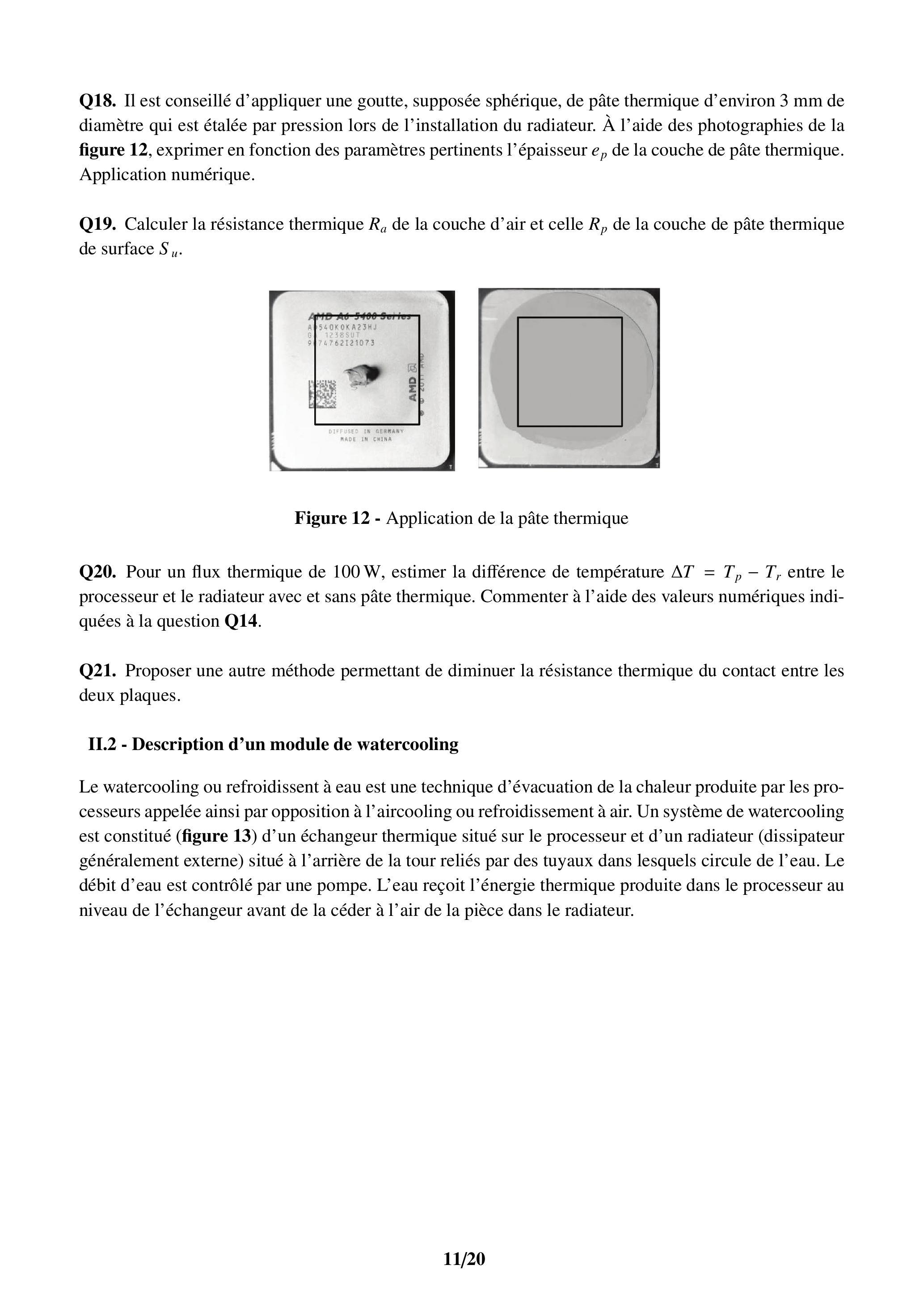 La partie II s'intéresse au transfert thermique du processeur vers le liquide de refroidissement.