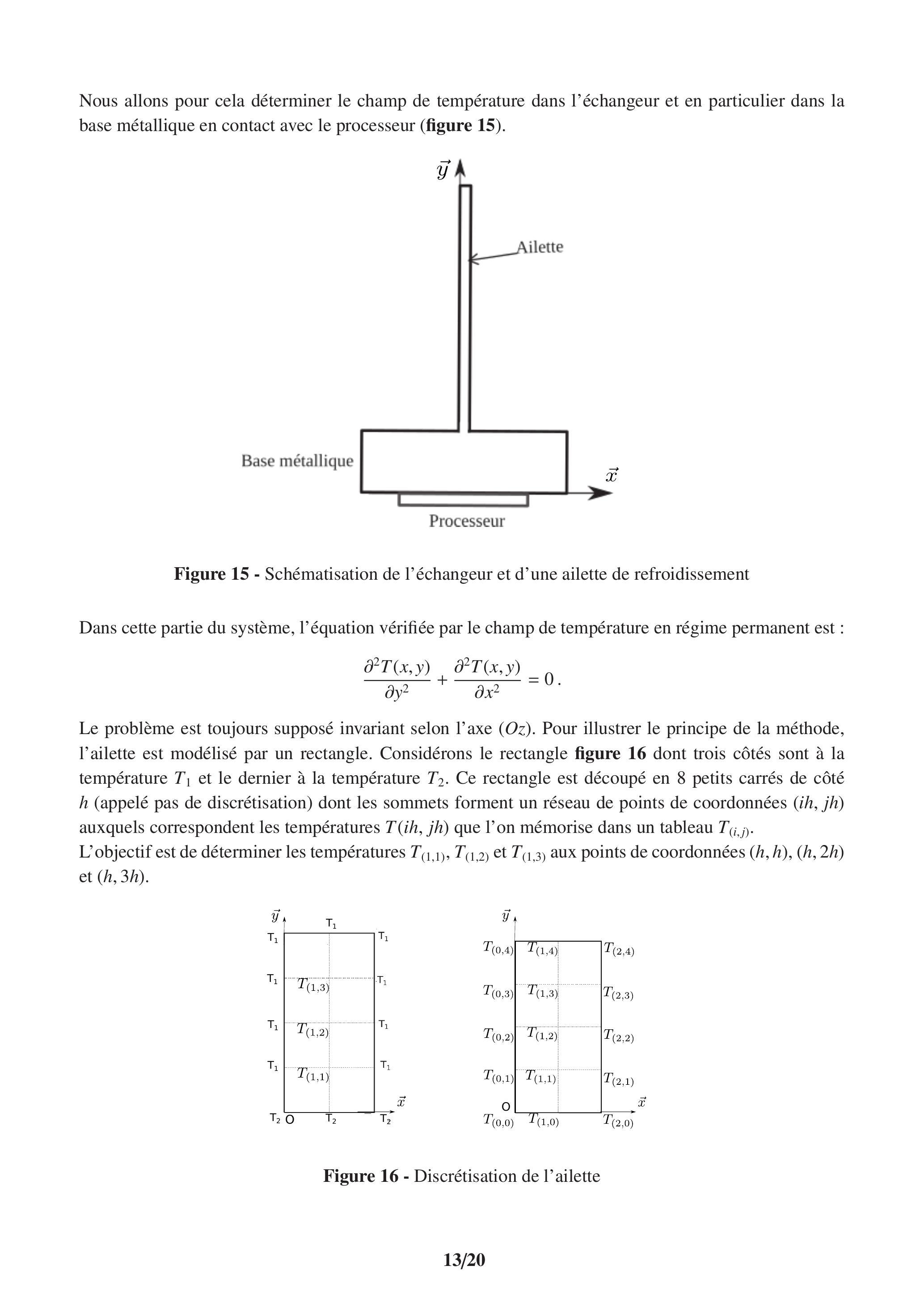 La méthode des différences finies centrées avec le pas de est utilisée pour déterminer le champ de température dans l'échangeur et en particulier dans la base métallique en contact avec le processeur.